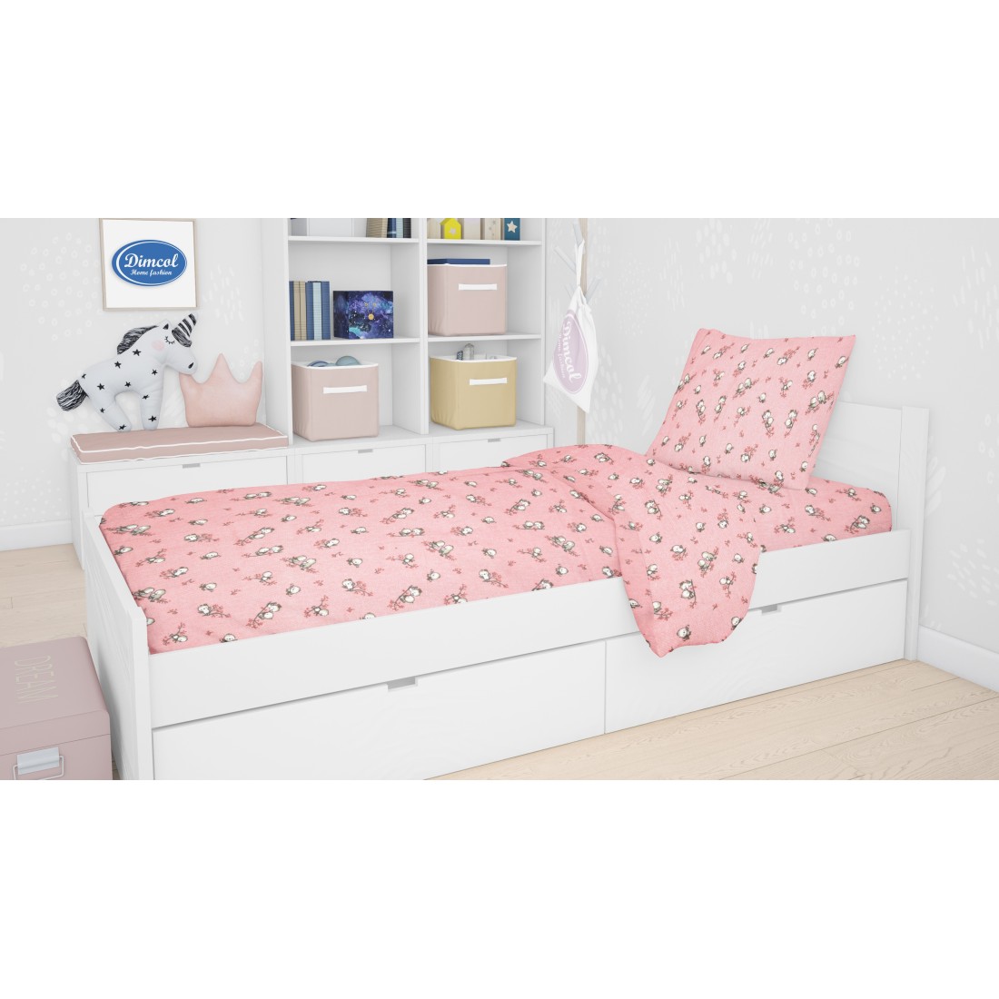 Μαξιλαροθήκη Φανελένια Dimcol Birds 15 Pink, εμπριμέ με χαρούμενα χρώματα και παραστάσεις.