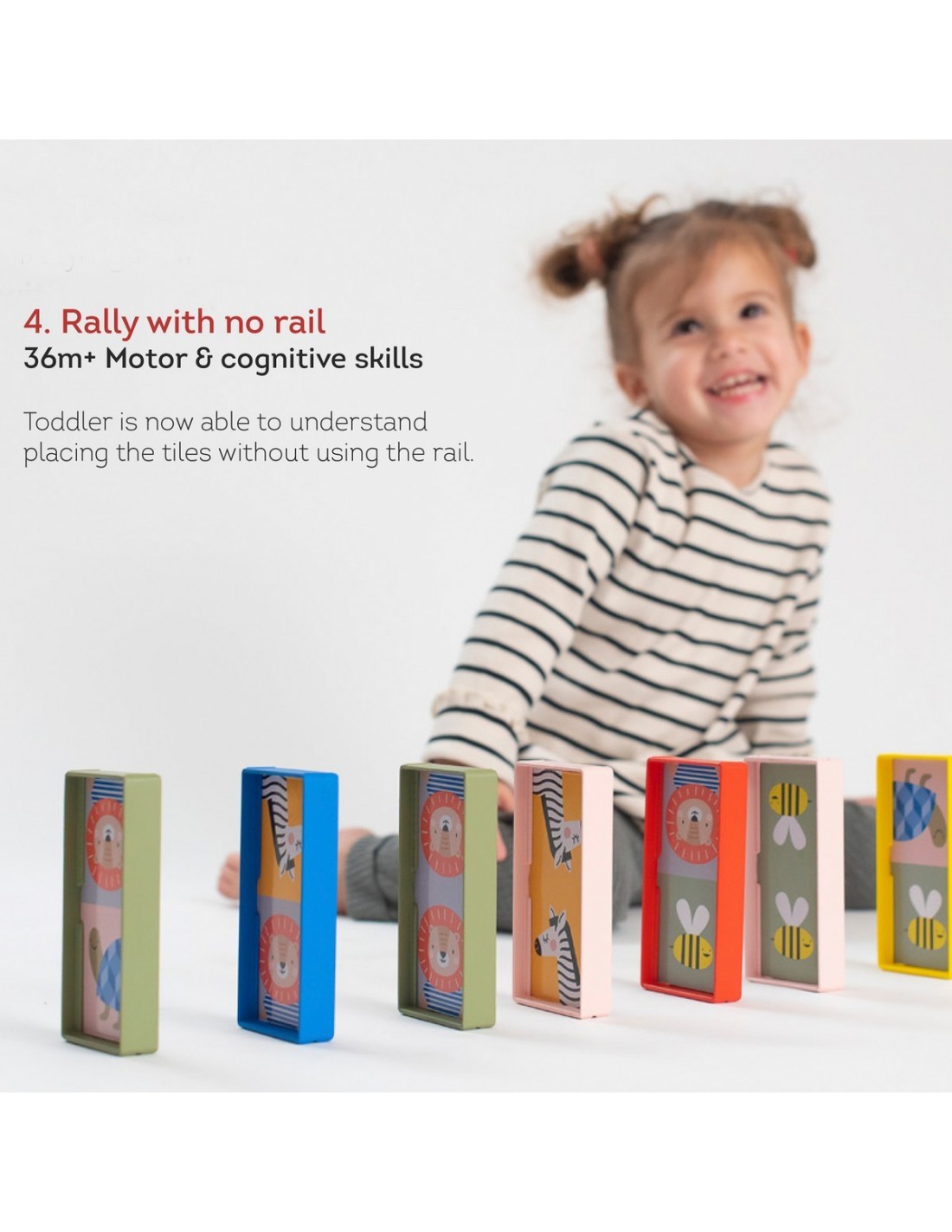 My 1st Domino Rally από την Taf Toys. Τo πρώτο μου ντόμινο!! Ιδανικό για να παίξετε με νήπια καθώς οι απλοί του κανόνες τα βοηθά να επωφελούνται παίζοντας και να μαθαίνουν να μετράνε, να αντιστοιχούν, να αναγνωρίζουν και να ονομάζουν χρώματα, ζώα και σχήματα. Το παιχνίδι ντόμινο βοηθά τα παιδιά να βελτιώσουν τις οπτικές τους ικανότητες, να αναπτύξουν τη φωτογραφική τους μνήμη καθώς και τις κινητικές και γνωστικές τους δεξιότητες.