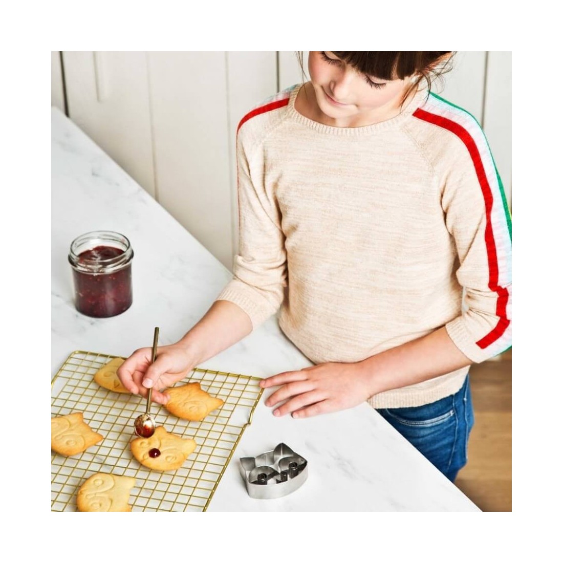 Τα παιδιά σας, από την άλλη, διασκεδάζουν λερώνοντας τα χεράκια τους, ζυμώνοντας και δημιουργώντας αμέτρητα μπισκότα. Επίσης, χρησιμοποιώντας αυτό το κουπάτ μπισκότων, αναπτύσσουν τις λεπτές κινητικές δεξιότητές τους.