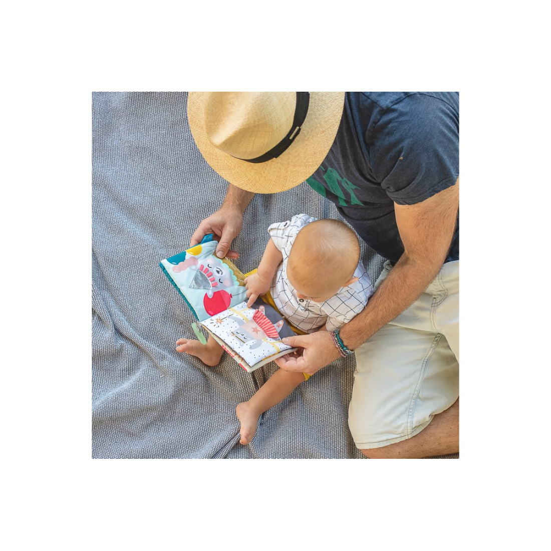 Ένα μαλακό, υφασμάτινο βιβλίο διπλής όψης με διαδραστικές σελίδες. Ενθαρρύνει το μωρό σας στην εξάσκηση των κινητικών του δεξιοτήτων, παίζοντας με τις διαφορετικές υφές. Κατασκευασμένο από μη τοξικά, ασφαλή και υψηλής ποιότητας υλικά με επιπλέον αντοχή και χωρίς αιχμηρές άκρες.