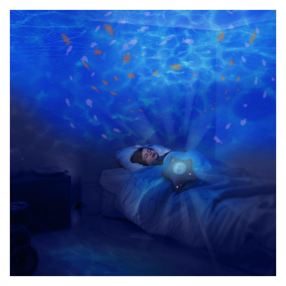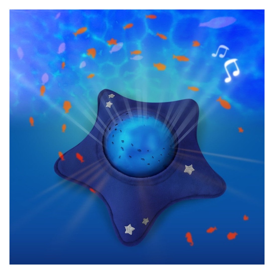 Μπορείτε να επιλέξετε ανάμεσα σε ένα απαλό νανούρισμα ή θαλασσινή μουσική για να βυθιστείτε στον υποβρύχιο κόσμο. Ρυθμιζόμενη ένταση (7 επίπεδα). Δυνατότητα αθόρυβης λειτουργίας