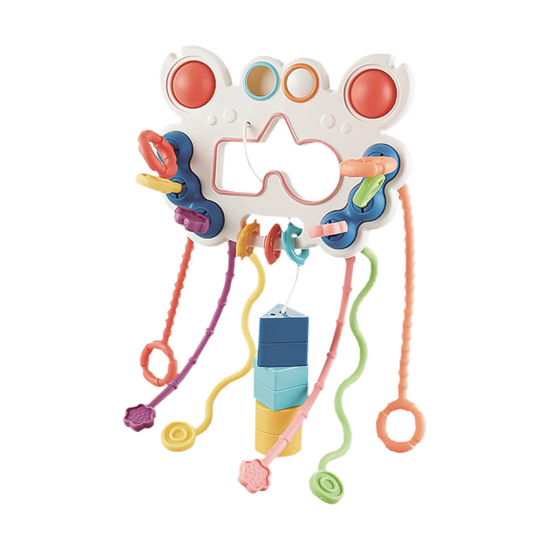 Το παιχνιδάκι butterfly είναι ένα πολύ-λειτουργικό αισθητηριακό παιχνίδι, το οποίο μπορεί να χρησιμοποιηθεί από παιδάκια 18+ μηνών. Μπορούν να παίξουν με 5 διαφορετικούς τρόπους με σκοπό να ασκήσουν την ευελιξία στα χέρια τους. Μπορούν να τραβήξουν τα πολύχρωμα μαλακά σχοινιά, να πιέσουν “φούσκες”, να σύρουν μια σφαίρα, να παίζουν με τα κρεμαστά εξαρτήματα και να ταιριάζουν 3 σχήματα με τις αντίστοιχες εγκοπές. Μέσα από το παιχνίδι μαθαίνουν να ξεχωρίζουν σχήματα και χρώματα.