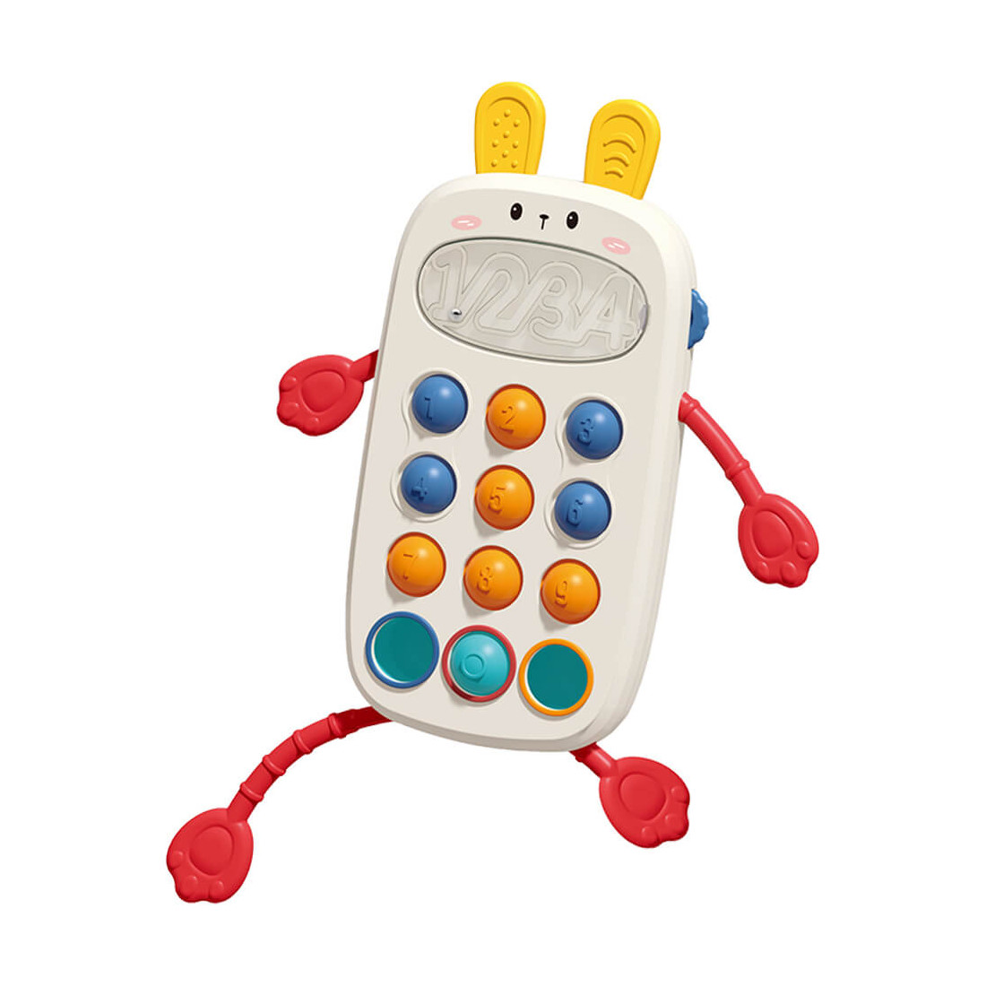 Το παιχνιδάκι rabbit mobile είναι ένα πολύ-λειτουργικό αισθητηριακό παιχνίδι, το οποίο μπορεί να χρησιμοποιηθεί από παιδάκια 18+ μηνών. Μπορούν να παίξουν με 8 διαφορετικούς τρόπους με σκοπό να ασκήσουν την ευελιξία στα χέρια τους. Μπορούν να τραβήξουν τα κόκκινα μαλακά σχοινιά, να κάμπτουν τα μαλακά αφτάκια, να πιέσουν “φούσκες”, να σύρουν μια σφαίρα, να πιέσουν κουμπιά με αναπαραγωγή ήχου, να παίζουν στον λαβύρινθο με τη χάντρα και να σέρνουν πλαϊνό κουμπάκι. Μέσα από το παιχνίδι μαθαίνουν να ξεχωρίζουν χρώματα και να μάθουν τους αριθμούς, καθώς και την δράση-αντίδραση όταν πατάνε κάποιο κουμπί παράγετε ήχος, έτσι μένουν ώρες απασχολημένα με δημιουργικό και εκπαιδευτικό τρόπο.