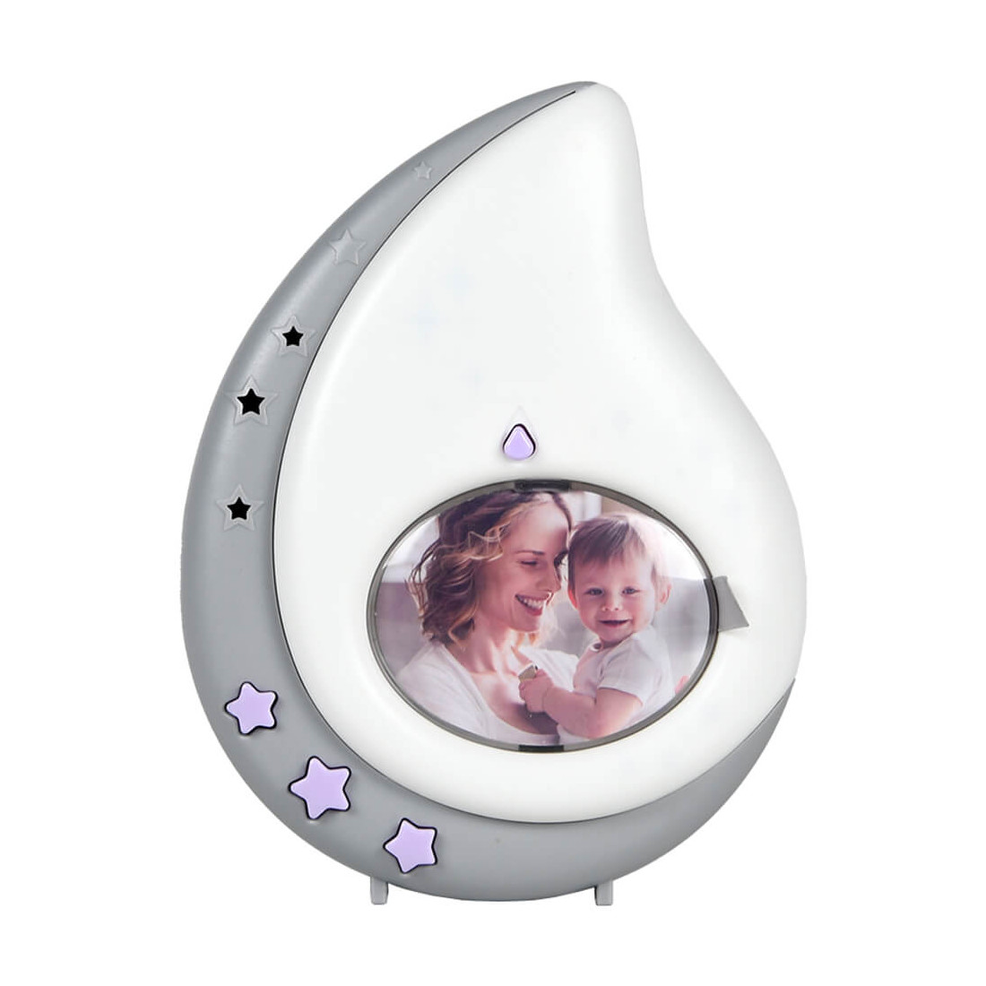 – Η λάμπα νυκτός dream melody με μουσική συμβάλει στη χαλάρωση του μωρού σας, ώστε να κοιμηθεί πιο εύκολα και γρήγορα. Διαθέτει μουσική, χαρούμενους ήχους και φως με σκοπό να απασχολούν το παιδάκι σας και να το διασκεδάζουν και με αυτό τον τρόπο αναπτύσσει ακουστικές και οπτικές αισθήσεις. Μπορείτε να το χρησιμοποιείται από νεογέννητο. Στο κέντρο της συσκευής υπάρχει ένα παράθυρο, ώστε να βάλετε φωτογραφία με το παιδάκι σας. Η λάμπα νυκτός τροφοδοτείται από 3 μπαταρίες 1,5V «AAA» (Δεν περιλαμβάνονται) και επίσης έχει διακόπτη On/off.