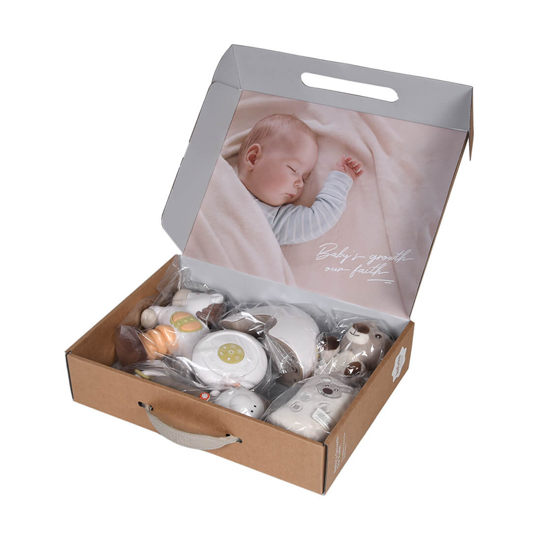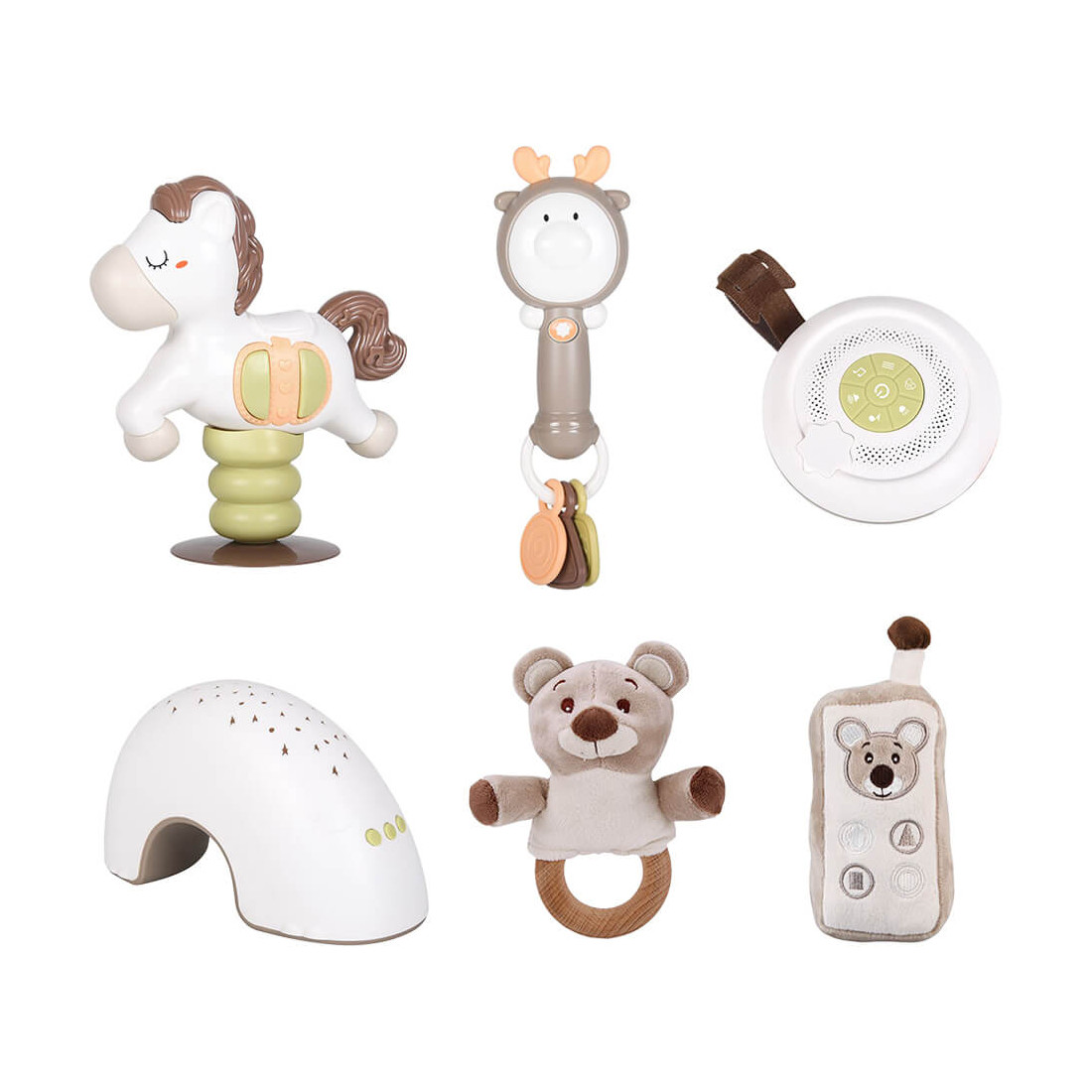 Το σετ περιλαμβάνει μαλακές και μη κουδουνίστρες, 2 λάμπες νυκτός και ένα παιχνίδι.