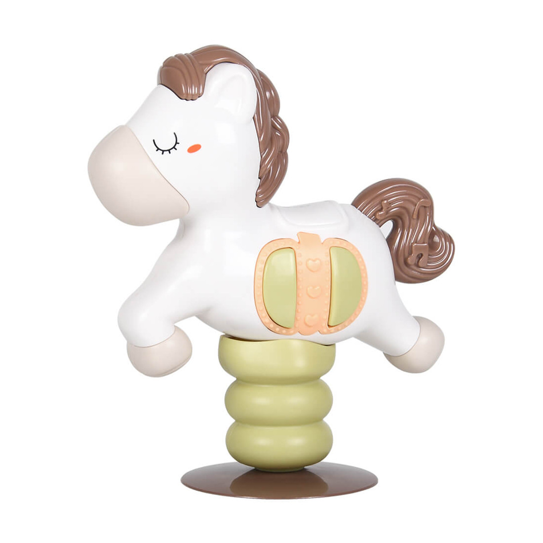 – Το κουνιστό αλογάκι (swing horse) είναι ένα παιχνίδι με βεντούζα, ώστε να στερεώνεται παντού και να συντροφεύει το παιδάκι σας σε κάθε χώρο που πηγαίνει. Αφορά παιδάκια από 12+ μηνών με σκοπό να τα βοηθήσει να αναπτυχθούν οι αισθήσεις του παρατηρώντας το περιβάλλον γύρω τους και τη φαντασία του, δημιουργώντας ιστορίες. Διαθέτει φως και ήχους/μελωδίες ανάλογα με το κουμπάκι που θα πατήσει. Το παιχνίδι τροφοδοτείται από μπαταρίες 2×1,5V “AA” (Δεν περιλαμβάνονται). Ευρωπαϊκές προδιαγραφές ΕΝ71, CE.
