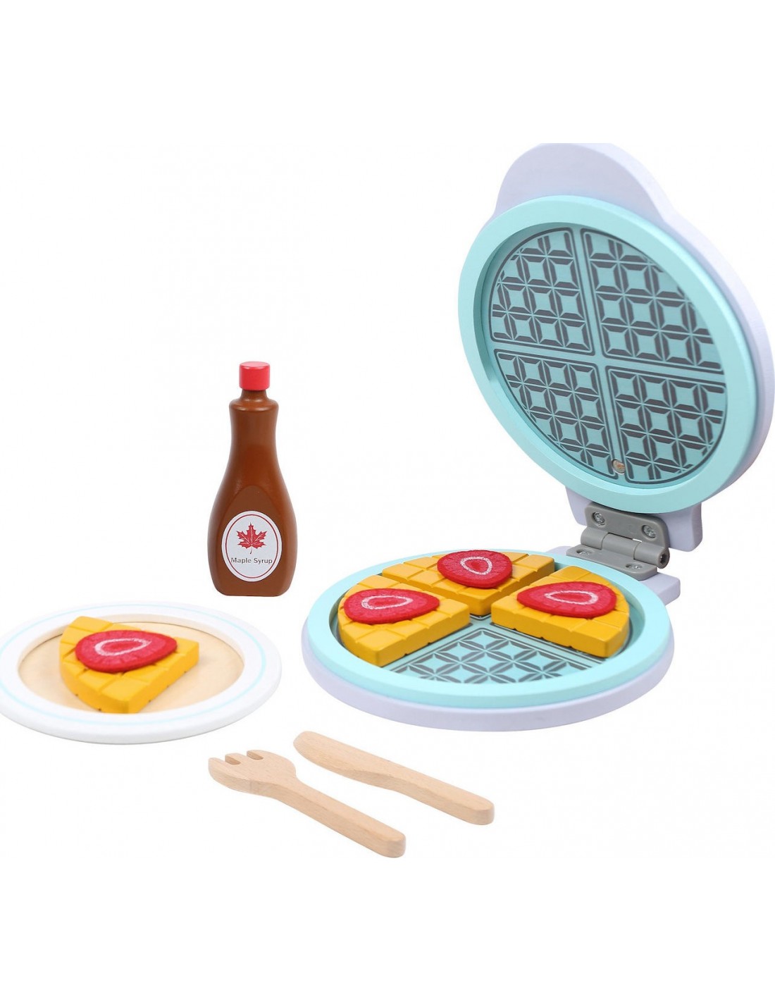 Περιλαμβάνει: μηχανή για βάφλες, τέσσερα κομμάτια βάφλας, ένα πιάτο, ένα πιρούνι, ένα μαχαίρι κι ένα μπουκάλι σιρόπι