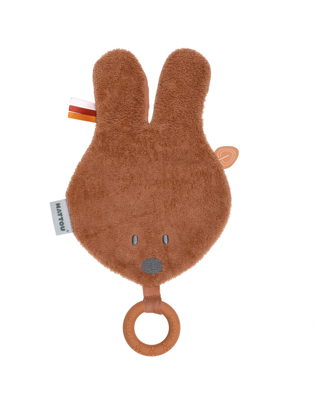 Το χαριτωμένο λαγουδάκι αγκαλιάς στο σετ μπορεί να στερεωθεί στον κρίκο οδοντοφυΐας ή να αφαιρεθεί από αυτό μέσω μιας μικρής υποδοχής.