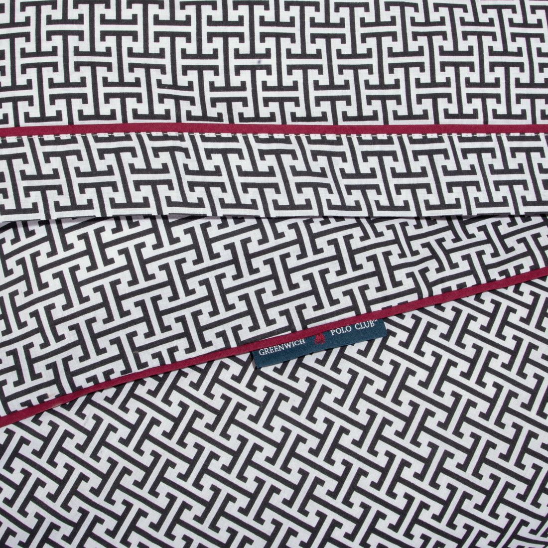 Σετ παπλωματοθήκη Greenwich Polo Club της σειράς Εssential. Το ύφασμα του είναι από υποαλλεργικό 70% βαμβάκι και 30% πολυεστέρα με πυκνότητα ύφανσης 150TC και με ειδική επεξεργασία για εύκολο σιδέρωμα. Το σετ αποτελείται από μία παπλωματοθήκη διαστάσεων 220Χ240εκ και δύο μαξιλαροθήκες 50Χ70εκ. Αυτό που χαρακτηρίζει την συλλογή είναι τα ιδιαίτερα σχέδια και οι χαρακτηριστικές αποχρώσεις. Επιλέξτε Greenwich Polo Club για να απολαύσετε ποιότητα. στυλ και πολυτέλεια.-Πλύσιμο στους 40°C. Όχι χρήση χλωρίου ή λευκαντικού. Σιδέρωμα σε μέτρια θερμοκρασία. Όχι στεγνό καθάρισμα.