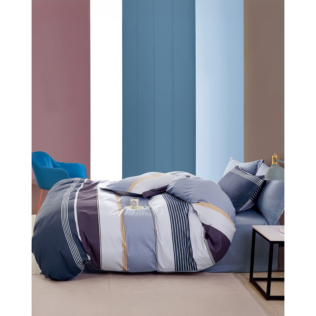 Μια υπέρκομψη υπέρδιπλη παπλωματοθήκη διπλή όψης. με ριγέ μοτιβό. Είναι κατασκευασμένη από 100% βαμβακοσατέν 200 κλωστών με νήματα πενιέ. για να προσφέρει απαλή αίσθηση και ευκολία στο σιδέρωμα. Διαθέτει κλείσιμο με φερμουάρ. Στο σετ περιλαμβάνονται δύο μαξιλαροθήκες τύπου oxford διπλής όψης. *Το σχέδιο στις μαξιλαροθήκες ενδέχεται να διαφέρει από αυτό της φωτογραφίας. καθώς η εταιρεία παράγει μαξιλαροθήκες από όλο το σχέδιο του υφάσματος και τις συσκευάζει με τυχαία σειρά. ** Συνδυάστε τα με τα υπόλοιπα είδη του ιδίου σετ για ένα ολοκληρωμένο αποτέλεσμα. ΦΡΟΝΤΙΔΑ/ ΟΔΗΓΙΕΣ ΠΛΥΣΗΣ Πλύσιμο σε μέγιστη θερμοκρασία νερού 40C. Απαγορεύεται η χρήση λευκαντικών ουσιών ή χλωρίνης. Στεγνωτήριο σε μεσαία θερμοκρασία. Σιδέρωμα σε μεσαία θερμοκρασία. Απαγορεύεται το στεγνό καθάρισμα.