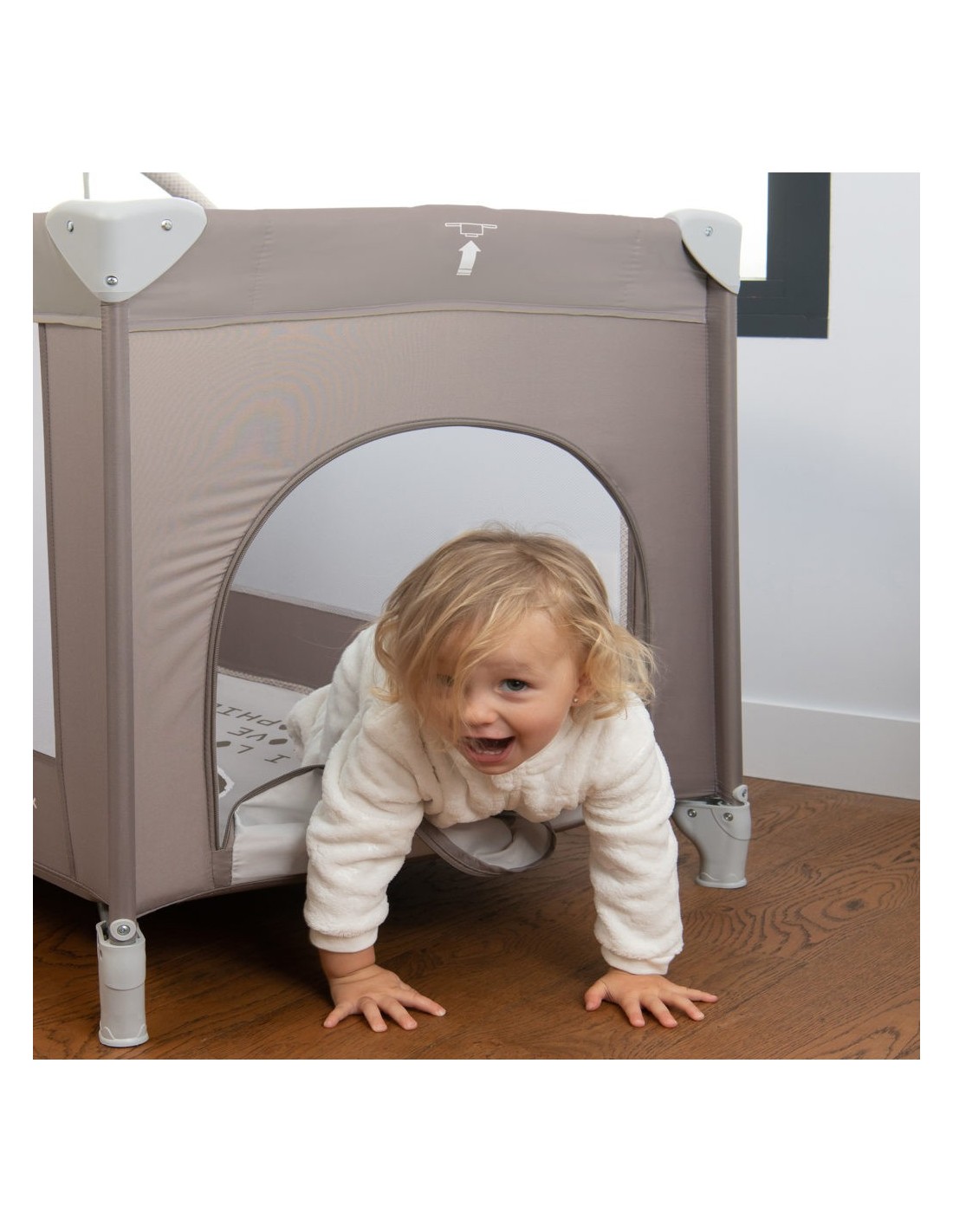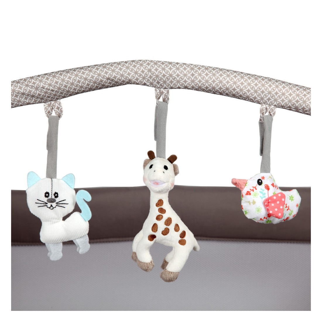 Περιλαμβάνει μια διακοσμητική μπάρα από μαλακά παιχνίδια που μπορεί να αφαιρεθεί και δύο λαβές οι οποίες βοηθάνε το μικρό σας να σταθεί.