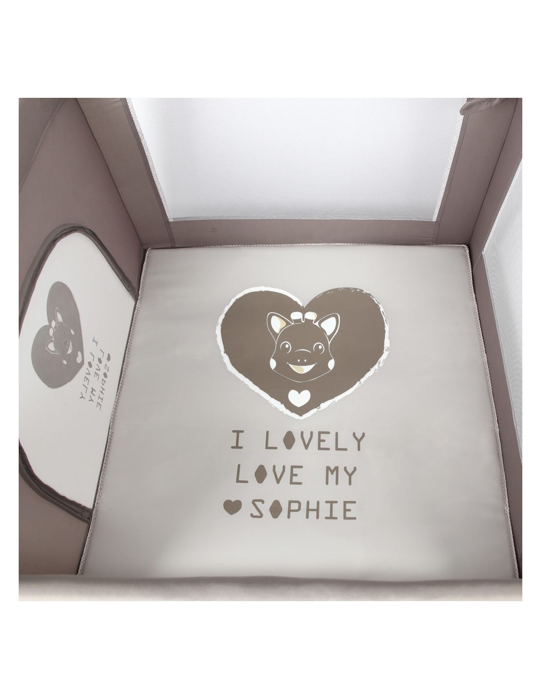 Οι τρεις πλευρές του είναι με δίχτυ ενώ η τέταρτη είναι από διακοσμημένο ύφασμα το οποίο περιλαμβάνει φερμουάρ που ανοίγει και μπορεί να το μετατρέψει σε ένα διασκεδαστικό παιχνίδι.