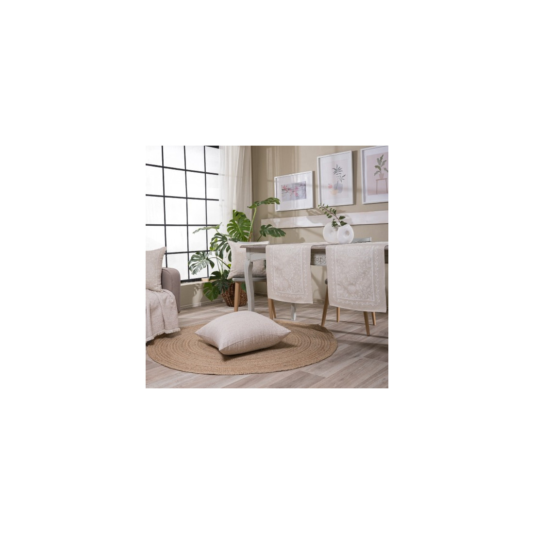 Τα υφάσματα υφαίνονται στην Ισπανία και μεταποιούνται από την εταιρία μας.Η σύνθεση του υφάσματος αποτελείται από νήματα ακρυλικά σε ποσοστό 40%. βαμβακερά σε ποσοστό 40% και πολυεστερικά σε ποσοστό 20%.Το συγκεκριμένο ύφασμα είναι γνωστό ως στόφα ή δαμάσκο.