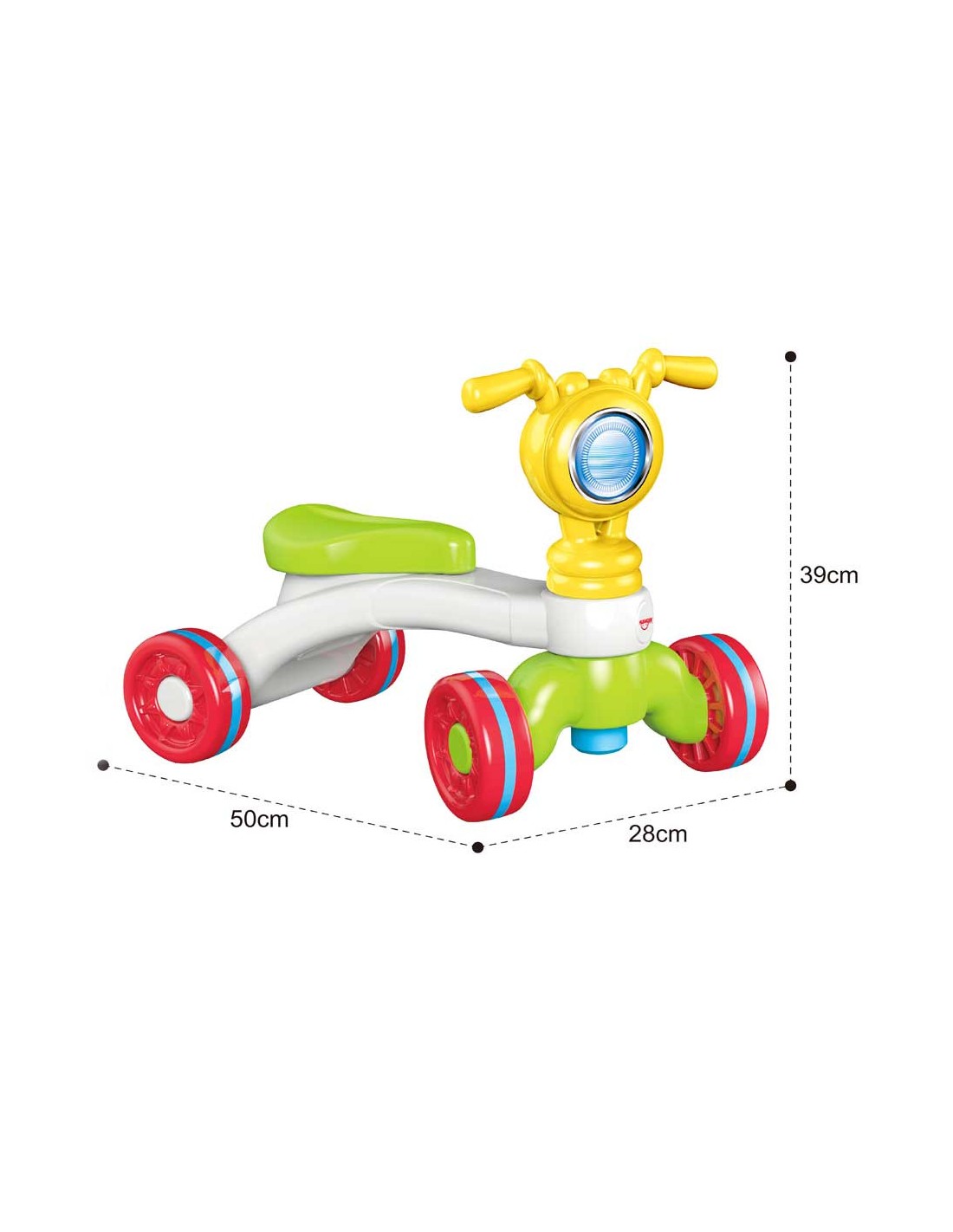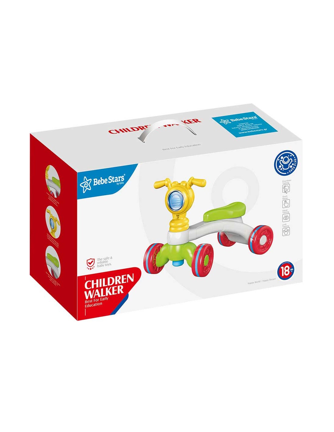 – Δίνει την δυνατότητα στο παιδί να κάτσει πάνω του και να μετακινηθεί στο χώρο χρησιμοποιώντας τα πόδια του, καθώς και να στηριχτεί στο τιμόνι ώσπου να καταφέρει να σταθεί όρθιο προκειμένου να περπατήσει.