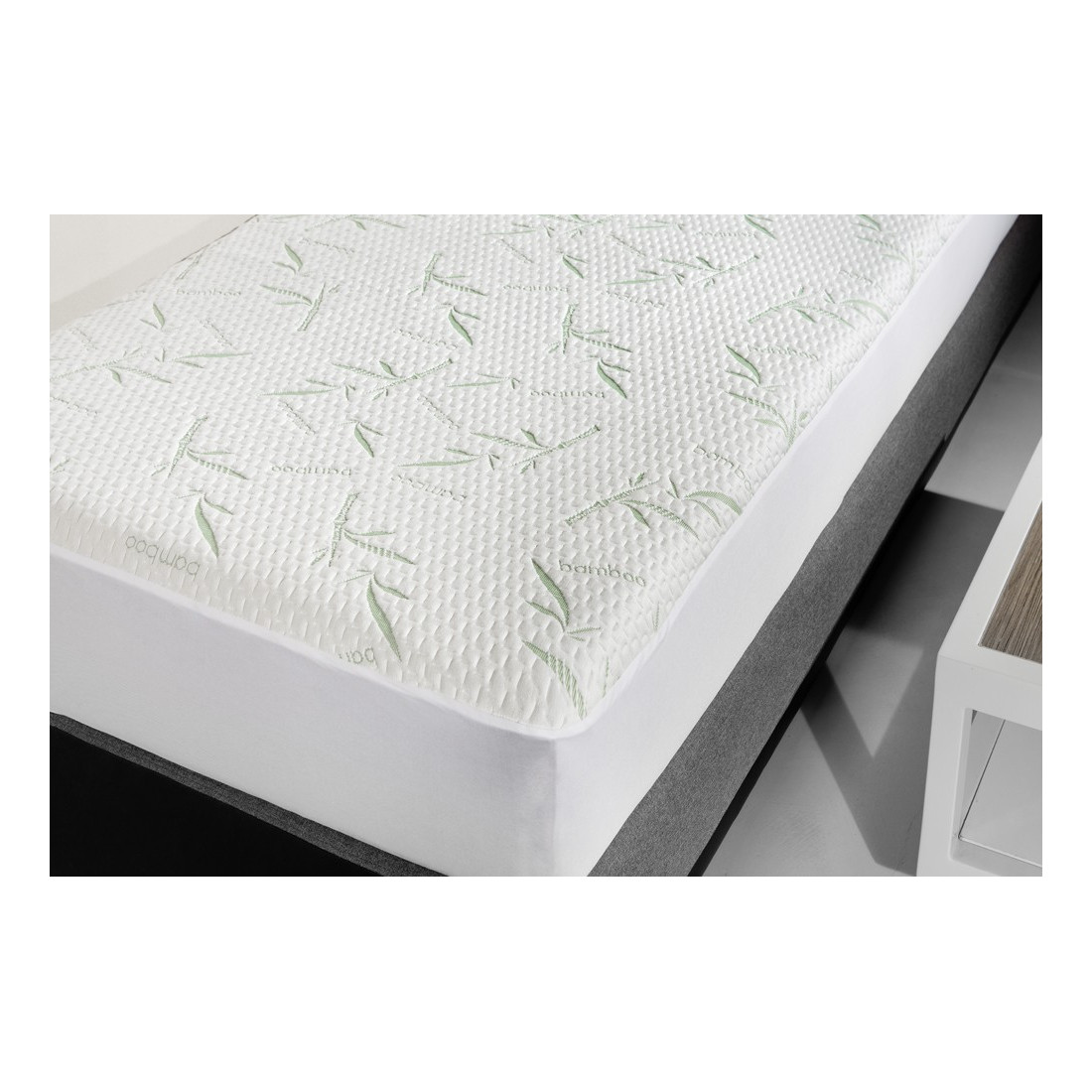 Αδιάβροχο προστατευτικό κάλυμμα στρώματος από 50% Bamboo, 50% Polyester και βάση από ειδική, πλήρως αδιάβροχη μεμβράνη PU που εξασφαλίζει στεγνό και άνετο ύπνο.