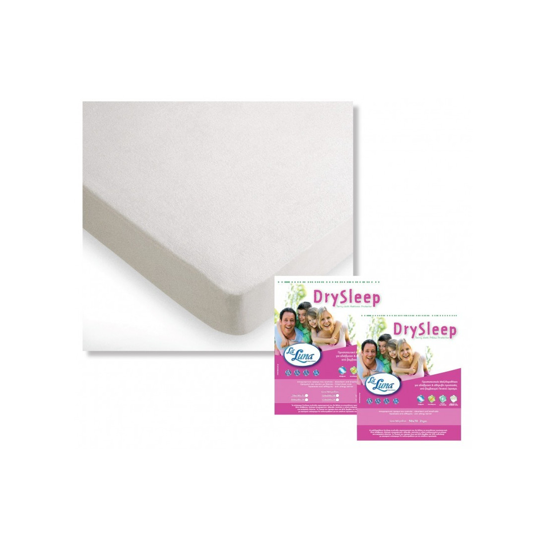 Αδιάβροχο προστατευτικό κάλυμμα στρώματος από 80% βαμβάκι, 20% πολυέστερ και βάση από ειδική, πλήρως αδιάβροχη μεμβράνη PU με πόρους, που επιτρέπουν στα μόρια του αέρα να τη διαπερνούν. Υποαλλεργικό.