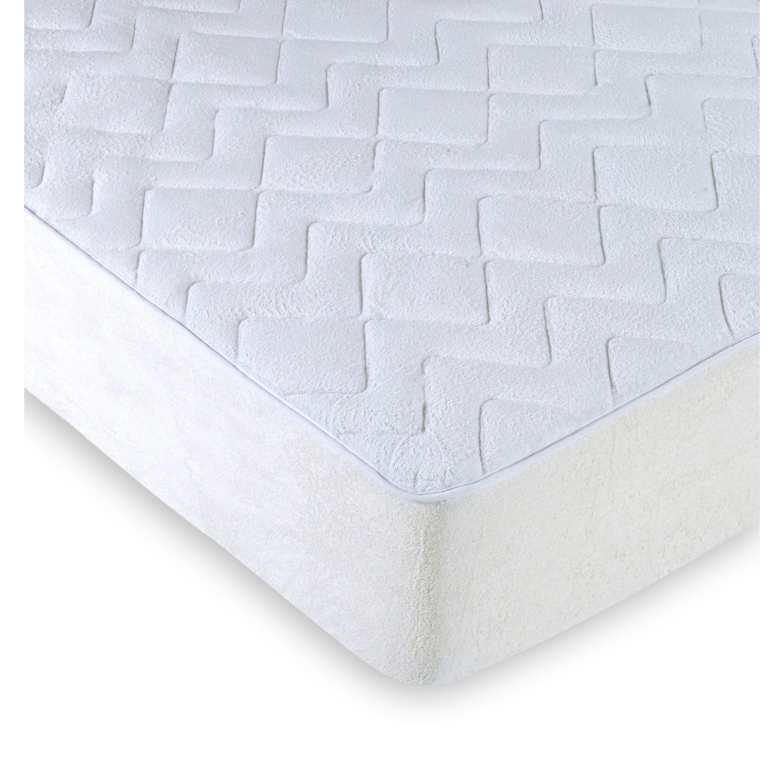 Αδιάβροχο καπιτοναρισμένο προστατευτικό κάλυμμα στρώματος με επιφάνεια από 100% βαμβακερό, πολύ μαλακό πετσετέ ύφασμα και βάση από ειδική, πλήρως αδιάβροχη μεμβράνη PU με πόρους, που επιτρέπουν στα μόρια του αέρα να τη διαπερνούν. Περιμετρικά έχει 100% βαμβακερή φούστα. Υποαλλεργικό