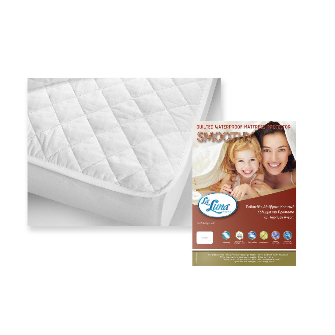 ...το απαλό αδιάβροχο καπιτονέ Αδιάβροχο προστατευτικό κάλυμμα στρώματος με επιφάνεια από 100% βαμβακερό καπιτονέ ύφασμα και βάση από ειδική πλήρως αδιάβροχη μεμβράνη PU με πόρους που επιτρέπουν στα μόρια του αέρα να την διαπερνούν. Περιμετρικά έχει ελαστική φούστα jersey.