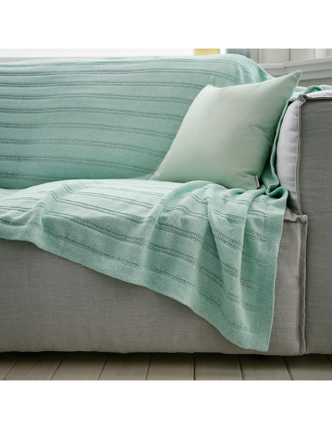 Πλεκτό διακοσμητικό ριχτάρι από βαμβακερά νήματα. Ιδιαίτερα μαλακό και χυτό ύφασμα.