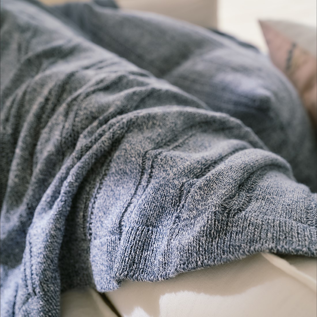 Πλεκτό διακοσμητικό ριχτάρι από βαμβακερά νήματα. Ιδιαίτερα μαλακό και χυτό ύφασμα.