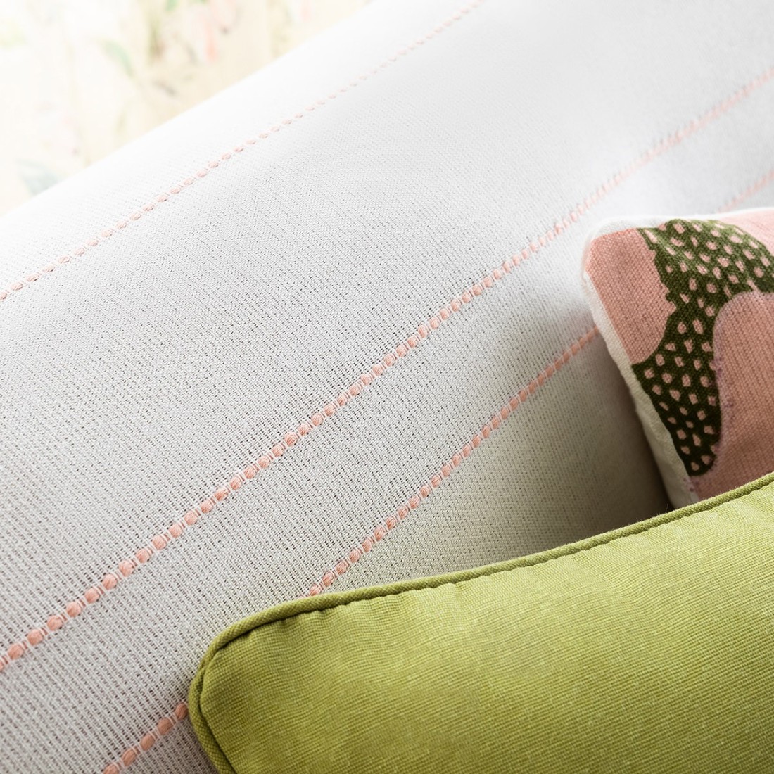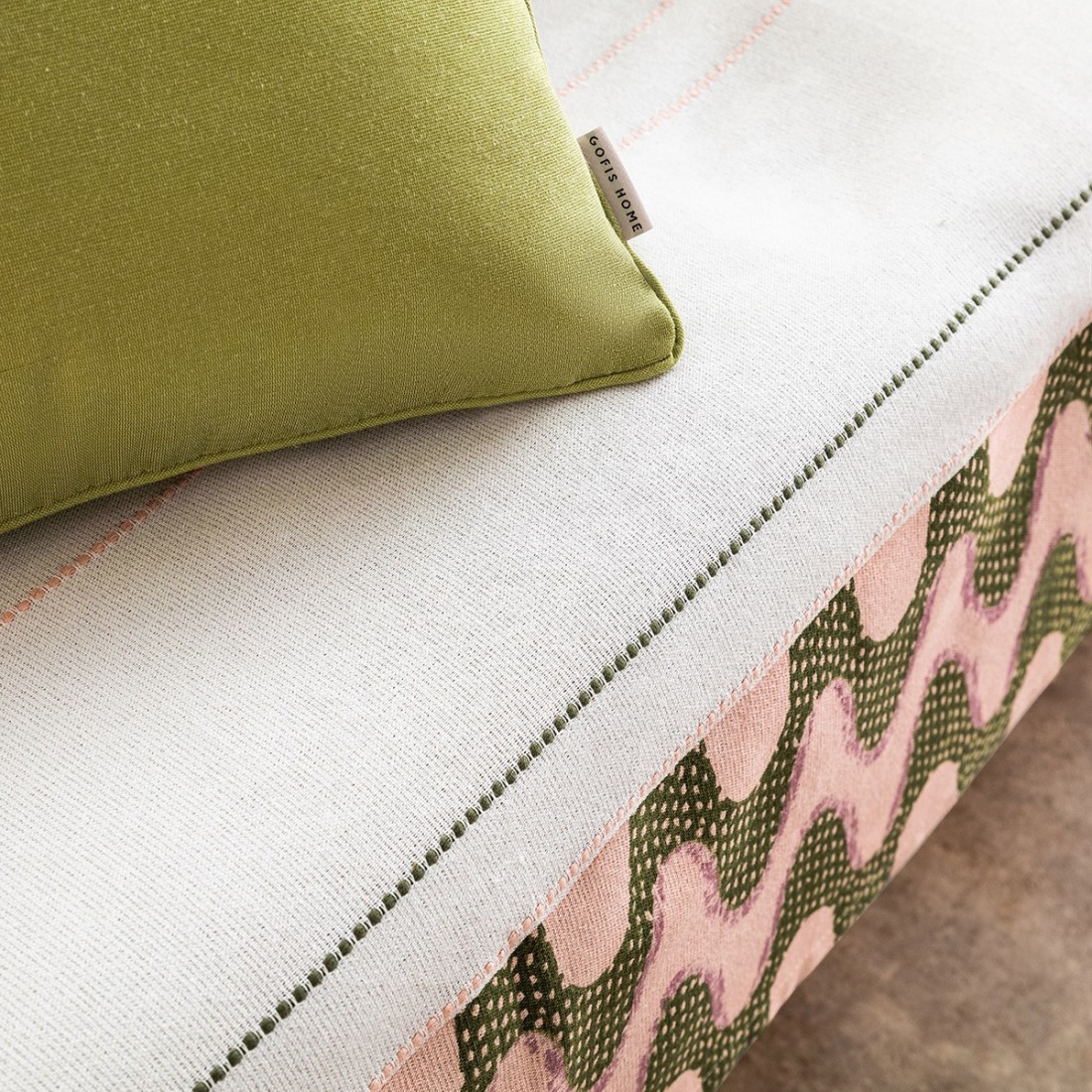 Με πολύ δροσερό βαμβακερό ύφασμα και κάθετες υφαντές ρίγες που καταλήγουν σε φαρδιά φάσα με τυπωμένο χρωματιστό σχέδιο.