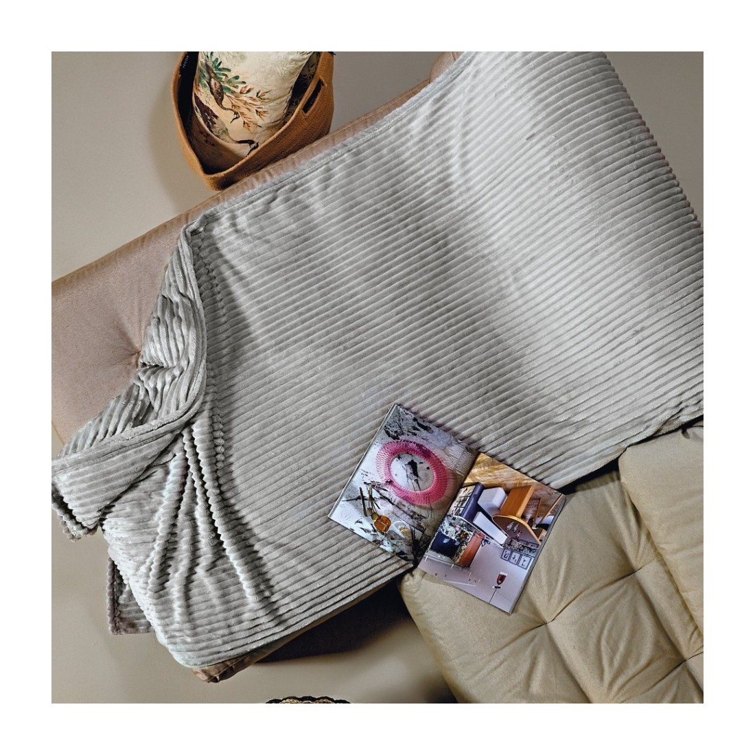 Fleece ριχτάρι με ριγέ ανάγλυφο σχέδιο. Τα Fleece υφάσματα είναι χνουδωτά, ζεστά, ελαφριά και ανθεκτικά. Δεν τσαλακώνουν, δεν χάνουν την φόρμα τους και έχουν πολύ μαλακή εμφάνιση και αίσθηση. Κατάλληλα για μια διακόσμηση πιο χαλαρή, πιο καθημερινή με θαλπωρή, ζεστασιά και casual κομψότητα.