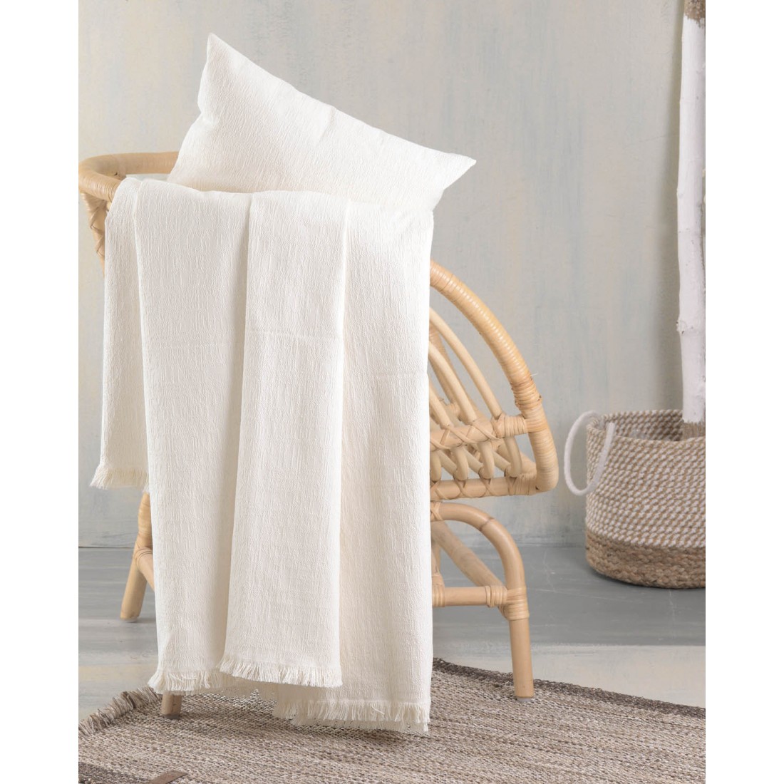 Ριχτάρι ζακάρ πολυθρόνας Rythmos mauricio εκρού 180x160