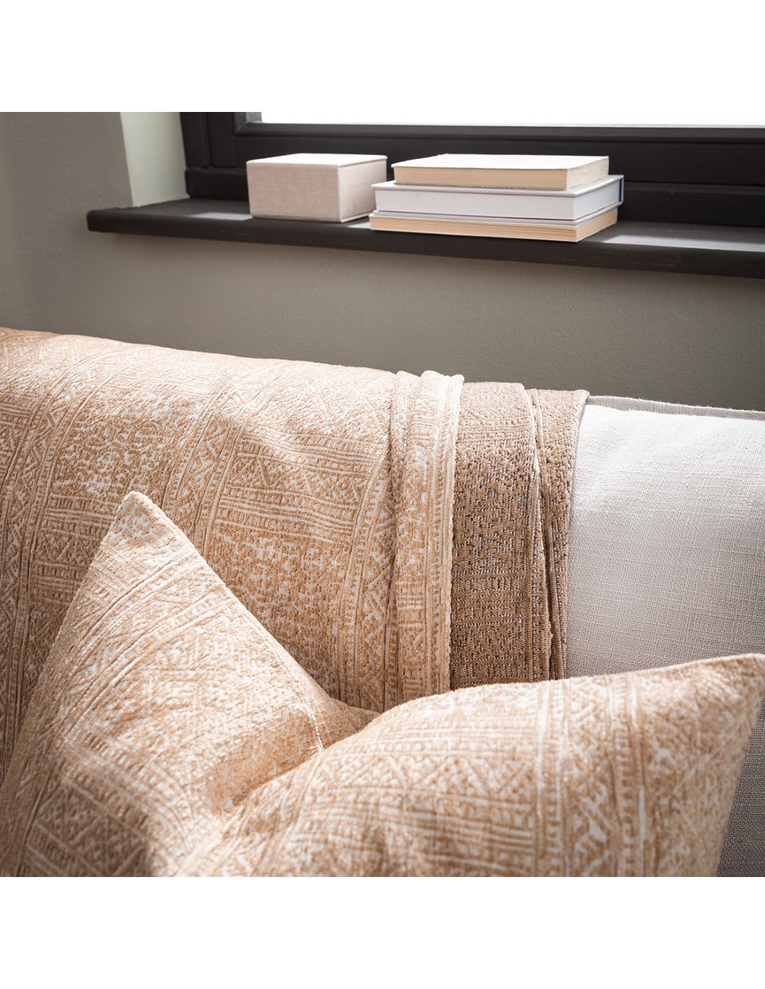 Με βαμβακερή βάση και ύφανση από απαλό chenille νήμα σε στυλ patchwork με εθνικ μοτίβα. Διακριτικό κρόσι 2cm στις δύο πλευρές.
