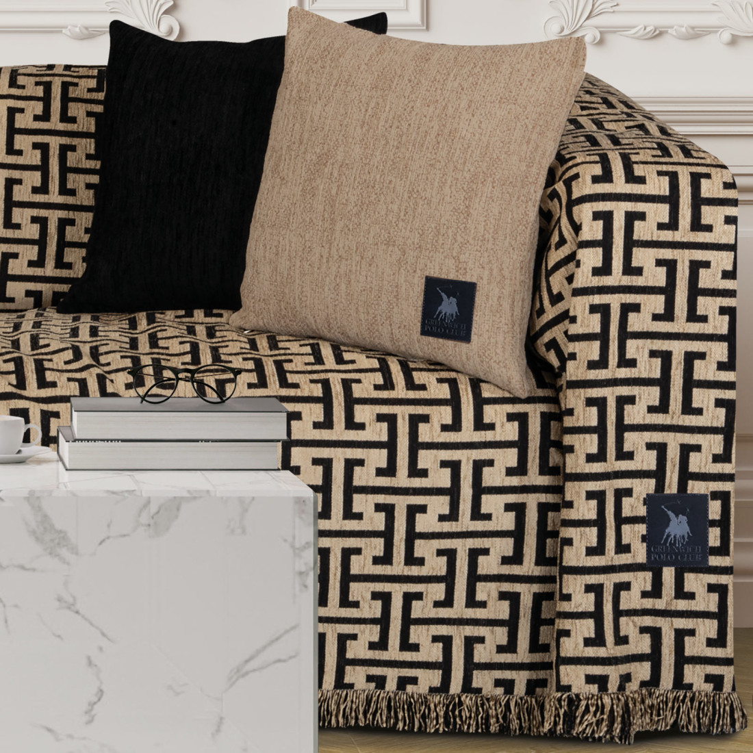 Ριχτάρι Διθέσιου Greenwich Polo Club 3932 Beige-Black 180x250