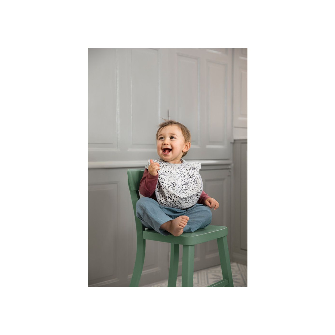 Η ευρεία εφαρμογή καλύπτει τόσο τους ώμους όσο και το στήθος, ενώ η μπροστινή τσέπη προλαβαίνει όλες τις διαρροές ή τα ψίχουλα, με αποτέλεσμα να μειώνεται ο καθαρισμός του δαπέδου