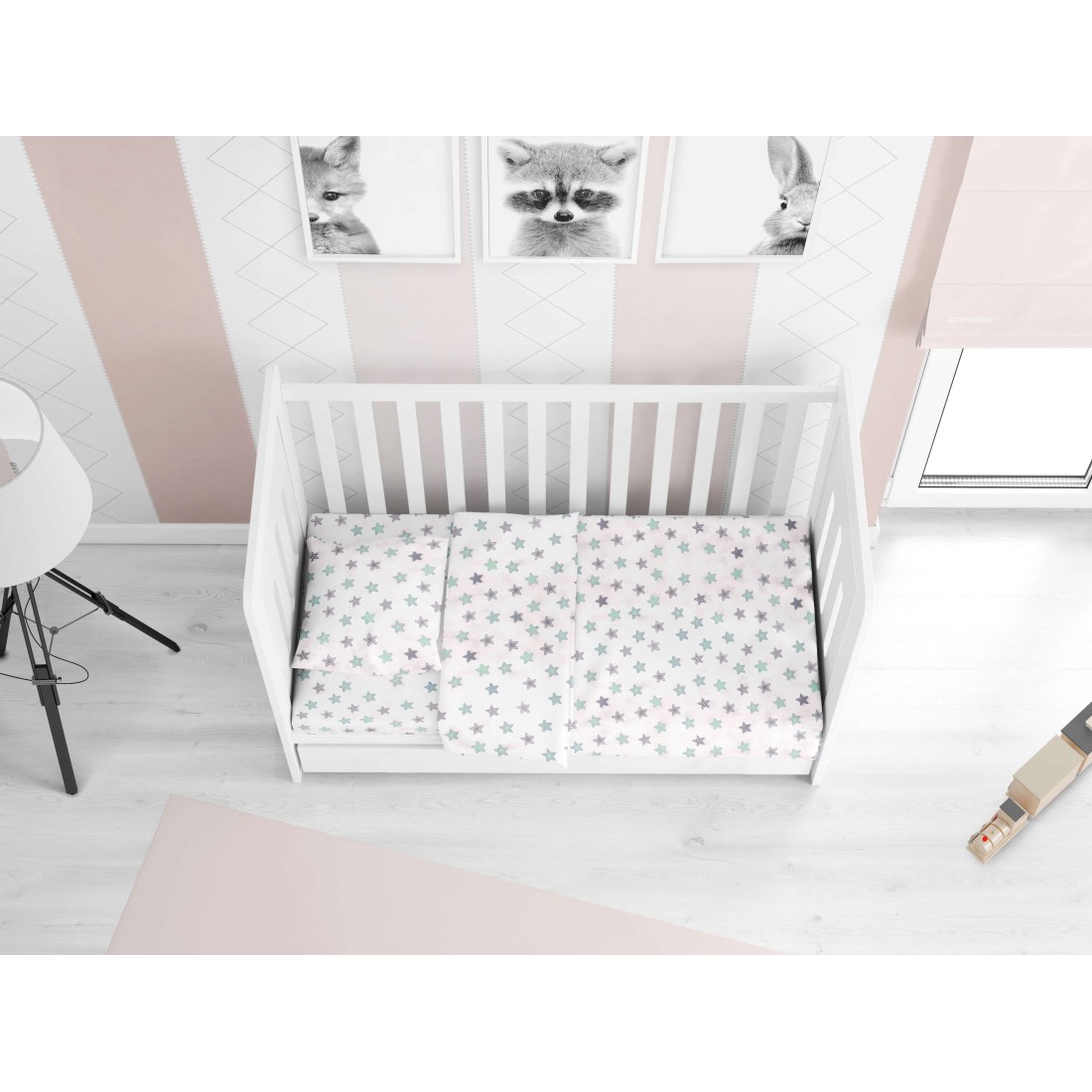 Βρεφικό κατωσέντονο κούνιας με λάστιχο Dimcol διακοσμημένα με όμορφα παιδικά σχέδια σε χαρούμενα χρώματα.
