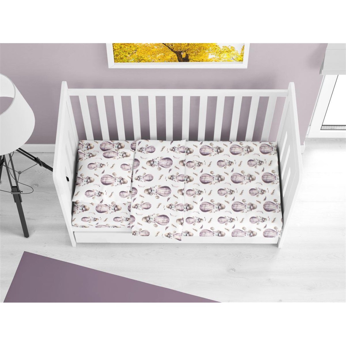 Σετ Σεντόνια Κούνιας Φανελένια 3 Τεμαχίων Dimcol Hot Air Balloon 78 120X160 Lilac