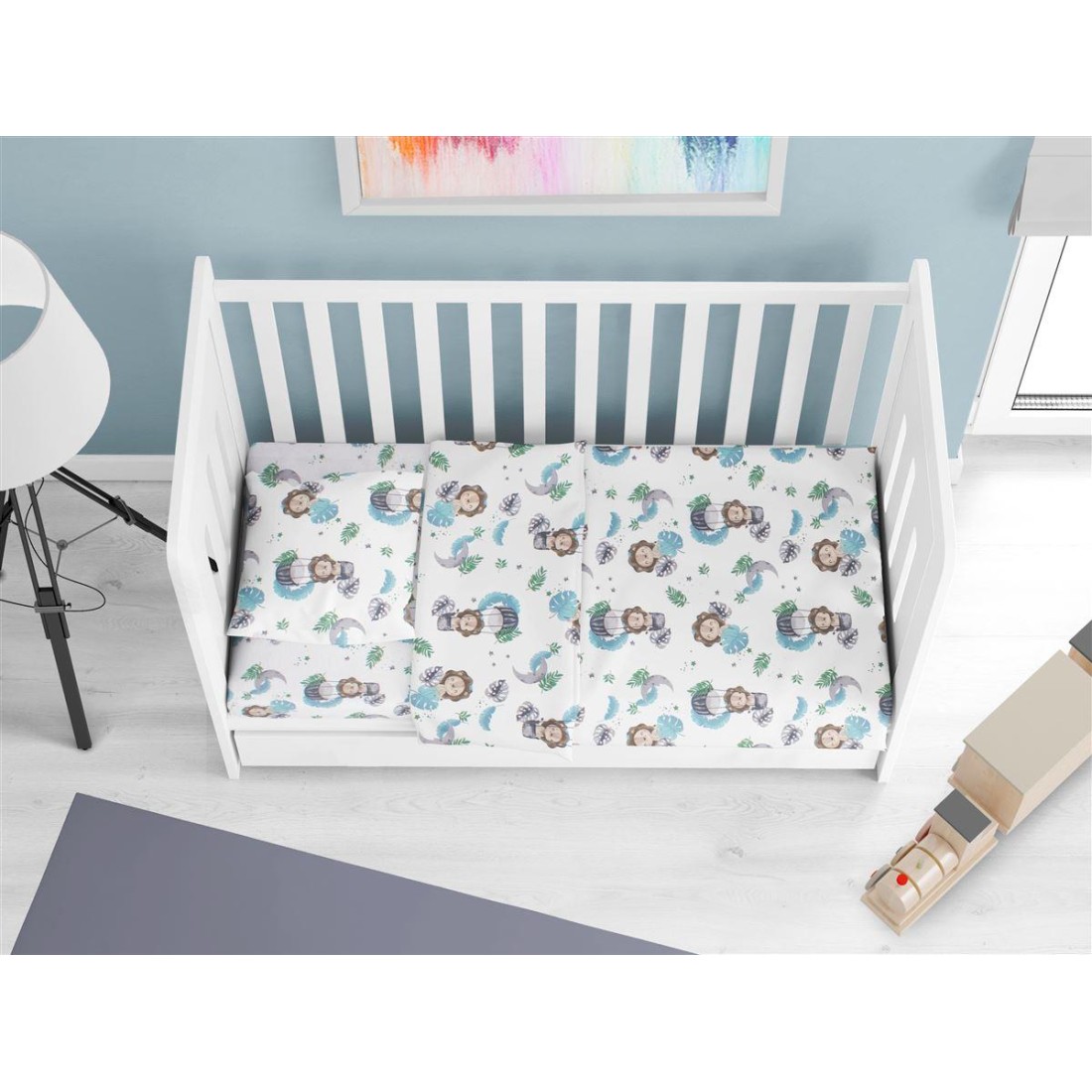 Σετ Σεντόνια Κούνιας 3 Τεμαχίων Dimcol Lion 533 120X160 Sky Blue