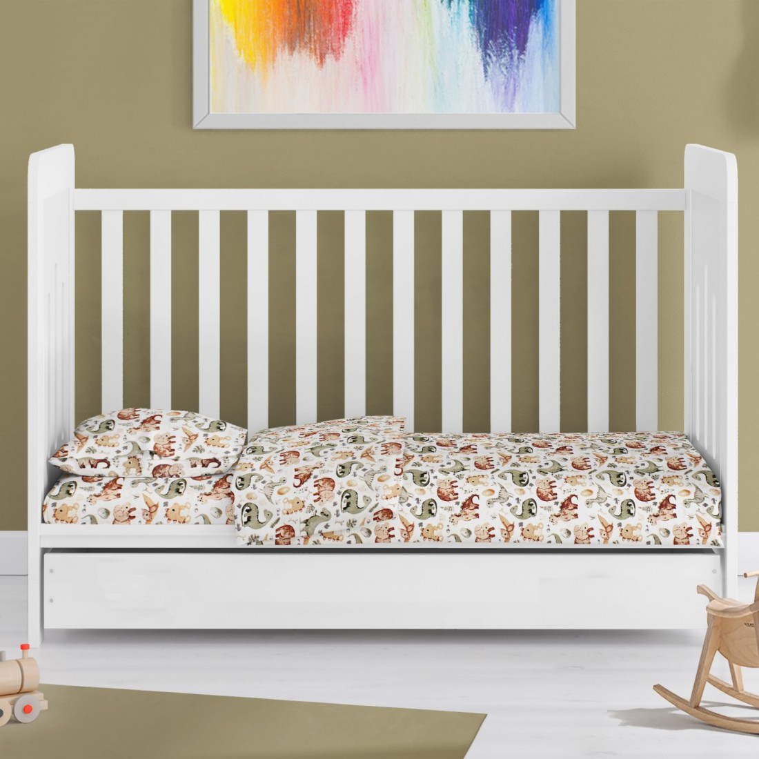 Βρεφικό κατωσέντονο κούνιας διαστάσεων 70x140+15 με λάστιχο Προσφέρει τέλεια εφαρμογή στη κούνια του μωρού. Κατασκευασμένο από απαλό ύφασμα 100% βαμβακερό, 144 κλωστών, σε χαρούμενα χρώματα με μοντέρνες βρεφικές παραστάσεις για τη κούνια του μωρού σας. Κατασκευάζεται στην Ελλάδα. Συσκευασία Polybag.