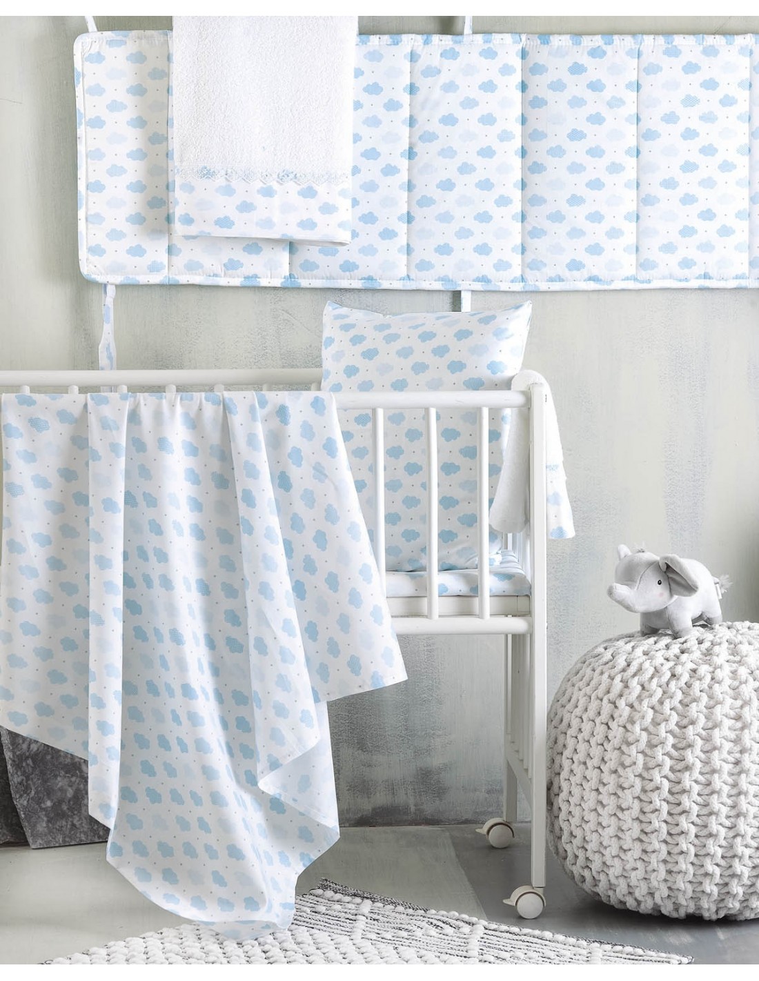 Σετ Σεντόνια Κούνιας 3 Τεμαχίων Rythmos Cloudy Μπλε 120x160