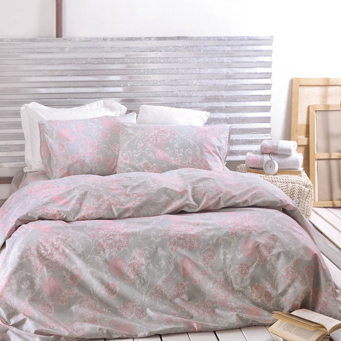 Σετ Σεντόνια Μονά με Λάστιχο 3 Τεμαχίων Rythmos Quin Γκρι 105x205+25