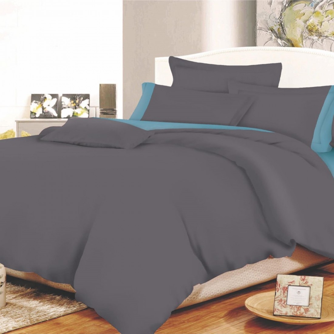 Σετ σεντόνια μονόχρωμα με φάσα, μονά 3 τεμαχίων ΚΟΜΒΟΣ cotton line anthracite-dolphin blue 160x240