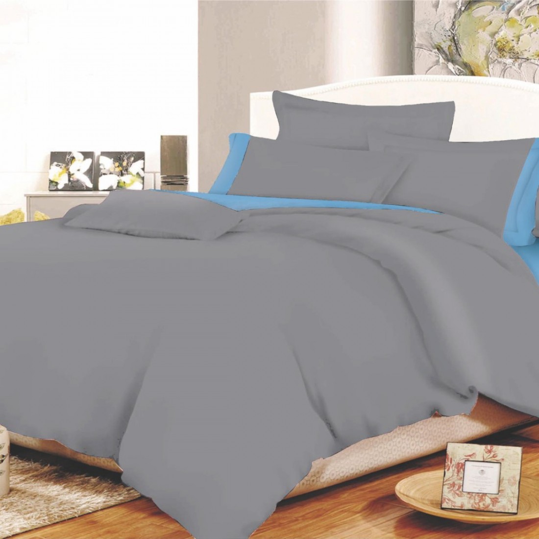 Σετ σεντόνια μονόχρωμα με φάσα, υπέρδιπλα 4 τεμαχίων ΚΟΜΒΟΣ cotton line grey-sky blue 220x240