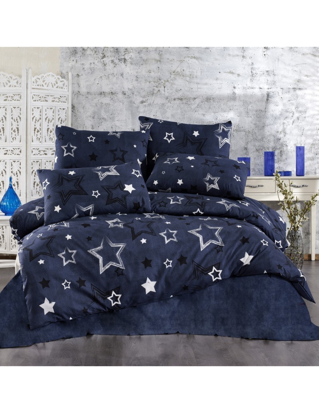 Κατωσέντονο μονόχρωμο Dark Blue Shadow κομποζέ ύφασμα της ίδιας σύνθεσης με το πανωσέντονο.