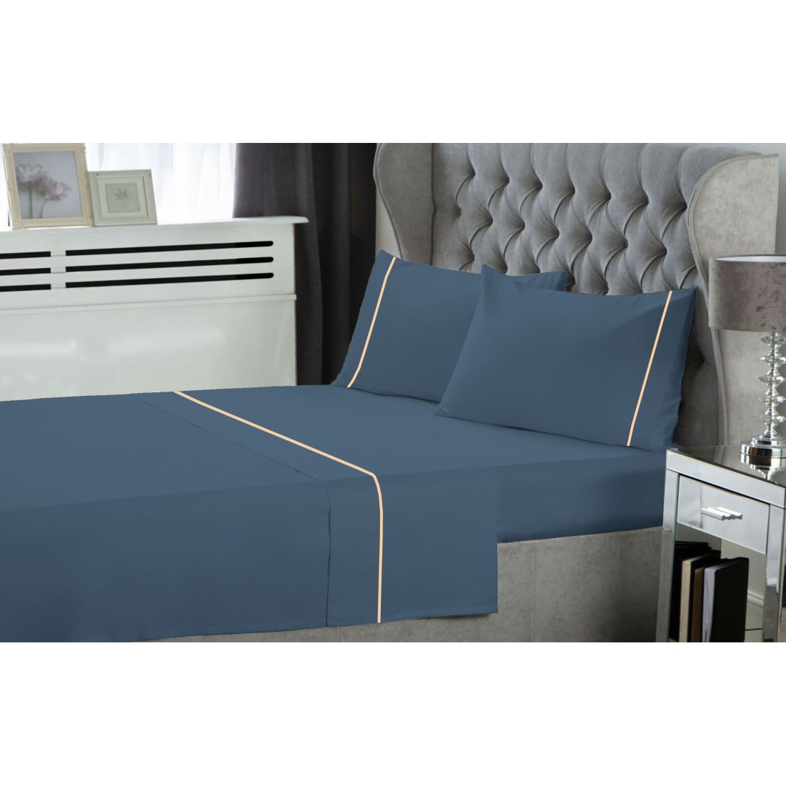 Σετ Σεντόνια Υπέρδιπλα 4 Τεμαχίων Le Blanc Φυτίλι Polycotton Dusty Blue 240x270
