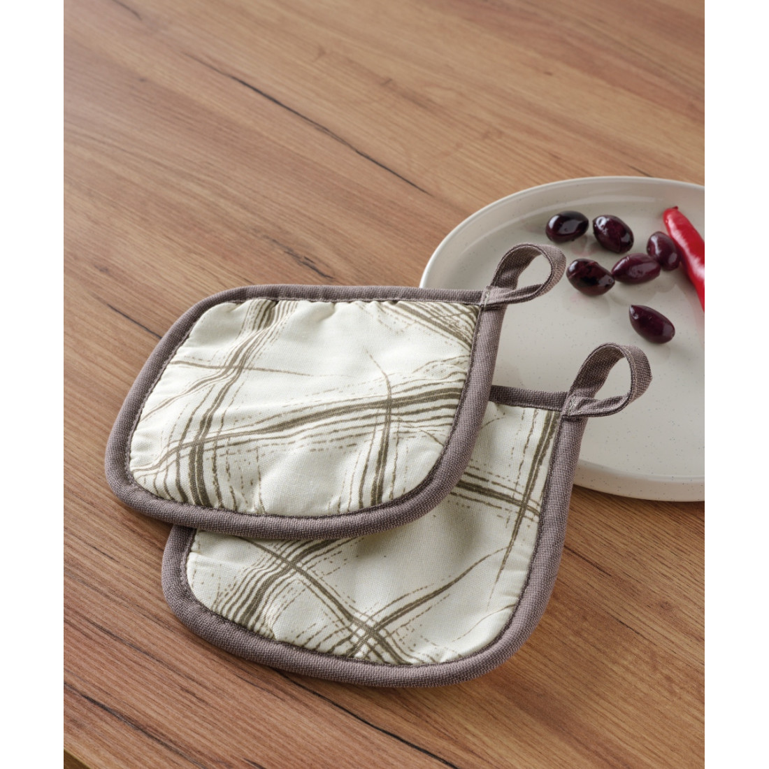 Σετ 2 τεμαχίων πιάστρες κατασκευασμένες από PANAMA DUCK μεικτό (βαμβάκι – polyester) ύφασμα. Το ύφασμα αυτής της κατηγορίας γνωστό και ως καμβάς είναι εξαιρετικής ποιότητας, υψηλής αντοχής με απλή όμορφη υφή και πολύ απαλή αίσθηση. Πλένεται στο πλυντήριο στους 40°C.