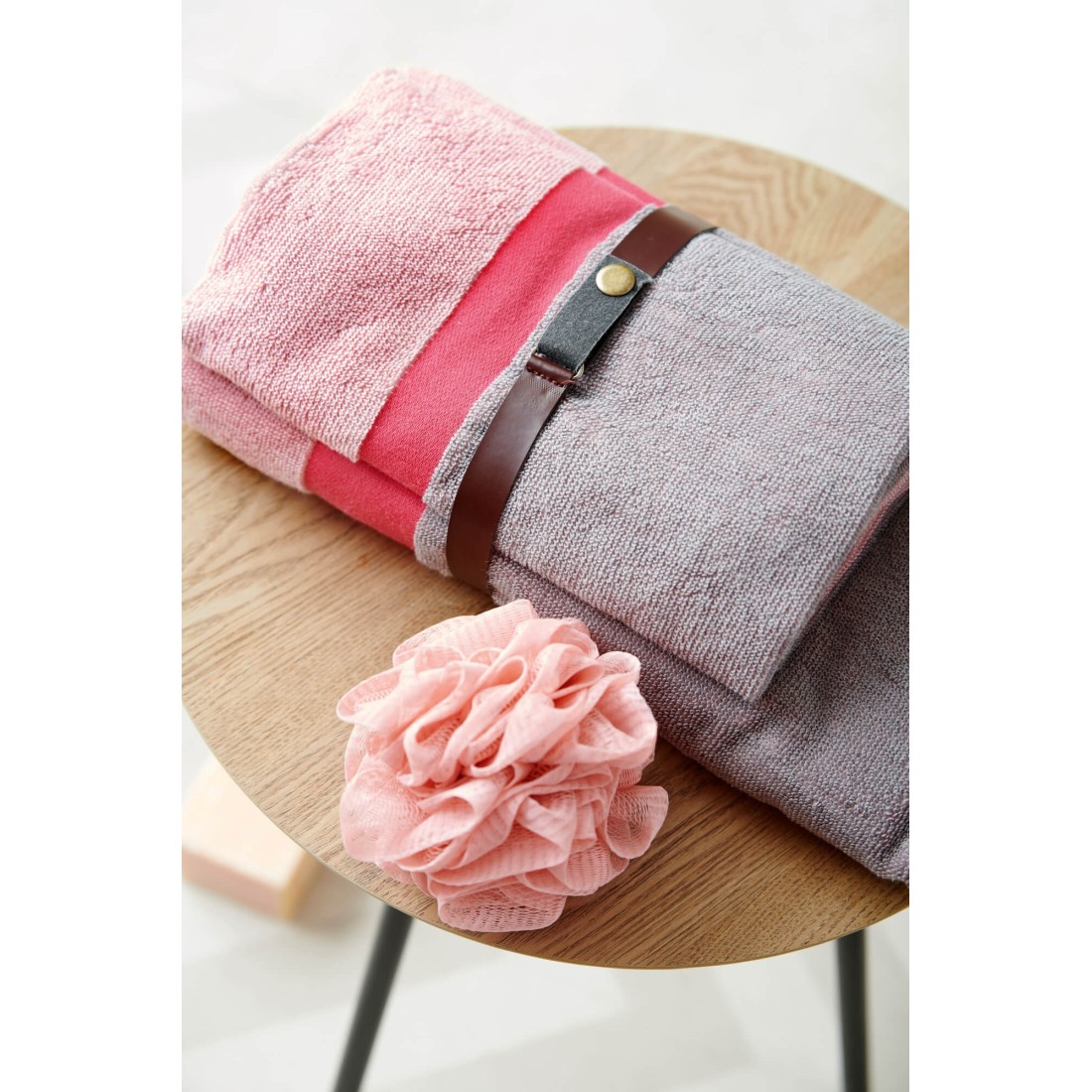Σετ Πετσέτες 2 Τεμαχίων Palamaiki Fandago Pink που περιλαμβάνει πετσέτα προσώπου και σώματος.