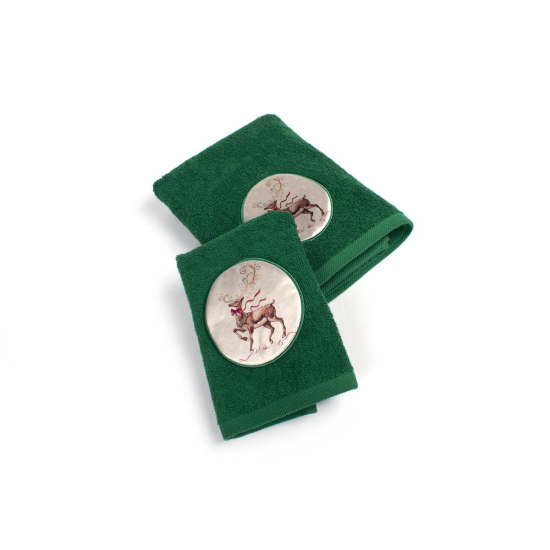 Σετ πετσέτες Χριστουγεννιάτικες 2 τεμ. με applique με χαρούμενα γιορτινά σχέδια και ανεξίτηλα χρώματα. ιδανικό για δώρο που περιέχει: 1 τεμ. πετσέτα χειρός διαστάσεων 30X50 και 1 τεμ. πετσέτα προσώπου διαστάσεων 50X90. σε χρώμα πράσινο. Οι πετσέτες είναι κατασκευασμένες από 100% βαμβάκι έξτρα απαλό και απορροφητικό. Συσκευασία δώρου με γιορτινή κορδέλα.