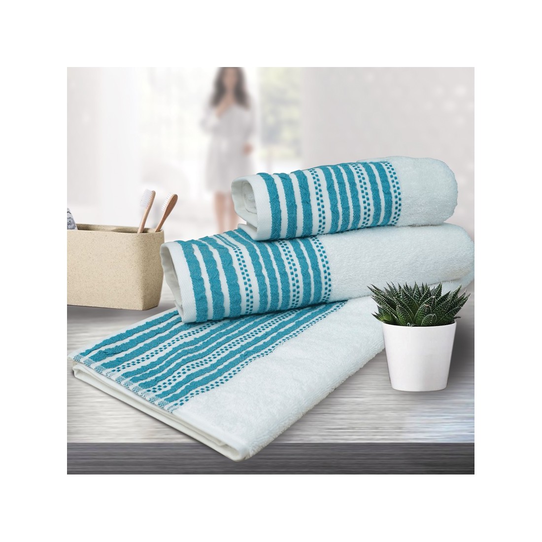 Σετ Πετσέτες 3 Τεμαχίων Sb Home Romina Aqua ιδανική επιλογή για το μπάνιο σας σε νέα σχέδια και χρώματα. Περιλαμβάνει πετσέτα χεριών, προσώπου και μπάνιου.