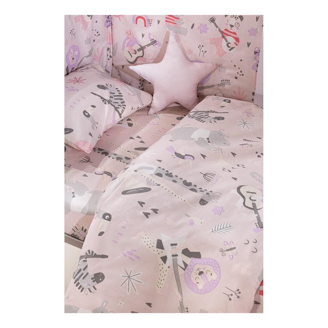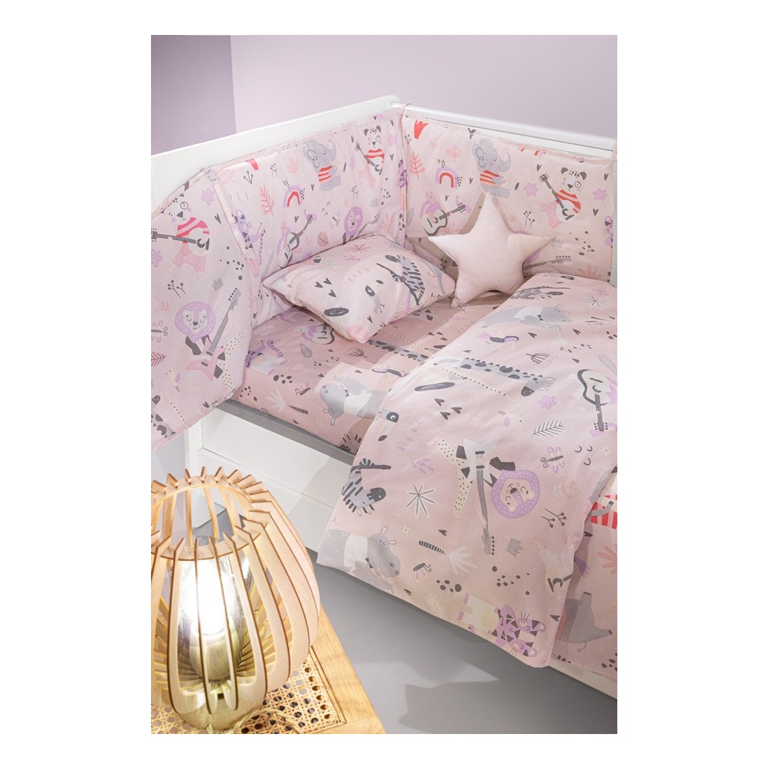 Σετ κούνιας από 100% βαμβάκι αποτελούμενο από 3 τεμάχια. Στο βρεφικό σετ θα βρείτε παπλωματοθήκη, μαξιλαροθήκη και πάντα.