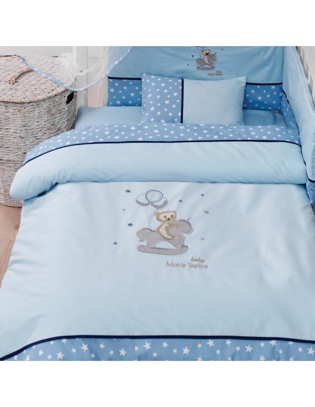 Διαστάσεις: Πάπλωμα 100x140, 2 σεντόνια 120x170, μαξιλαροθήκη 30x40, πάντα 35x200, κουνουπιέρα 210x470(περίμετρος)