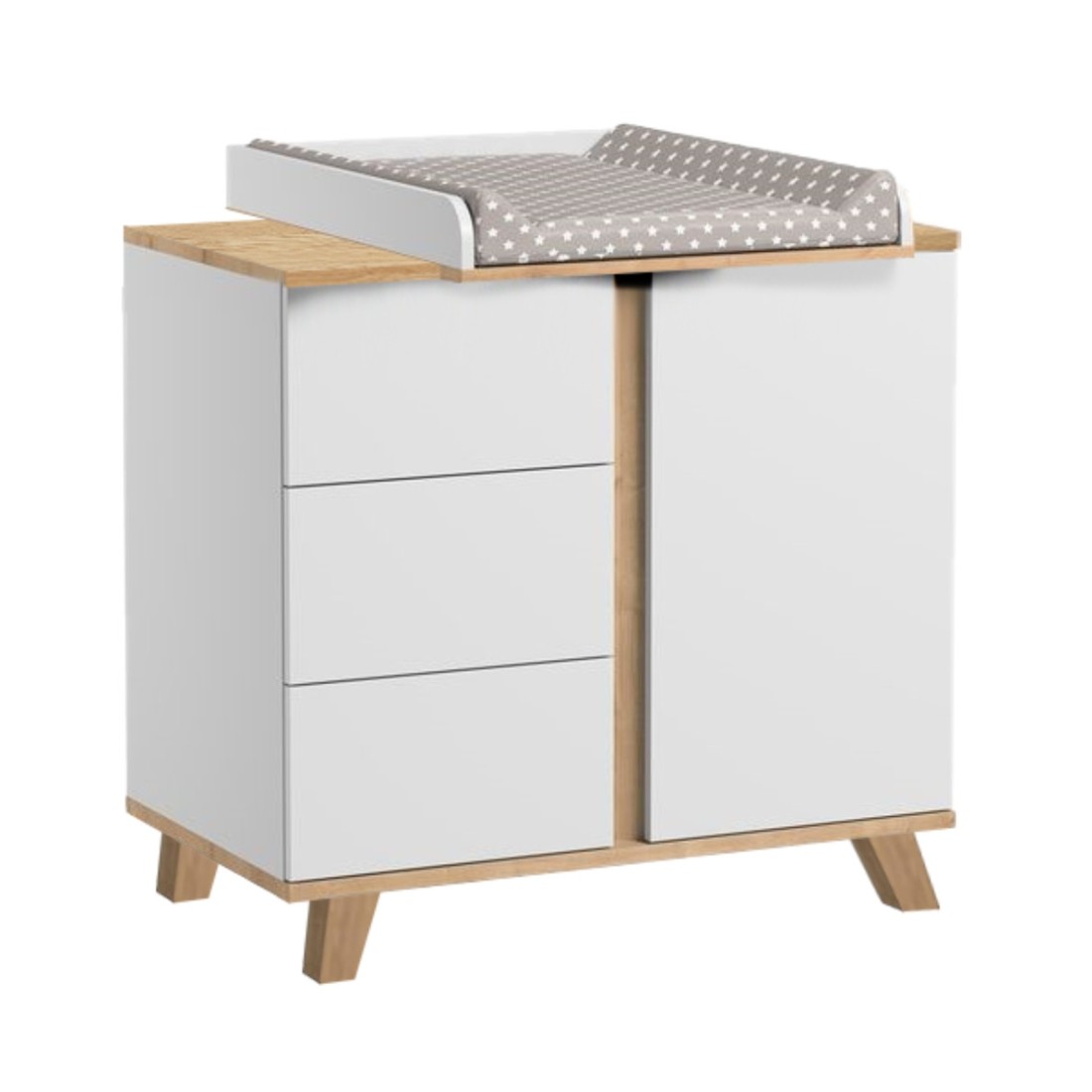 Η νέα , μοντέρνα και στυλάτη συρταριέρα- αλλαξιέρα Cappuccino, διαθέτει 3 ευρύχωρα συρτάρια και ένα ντουλάπι που παρέχουν επαρκή χώρο για όλα τα πράγματα του μωρού σας.