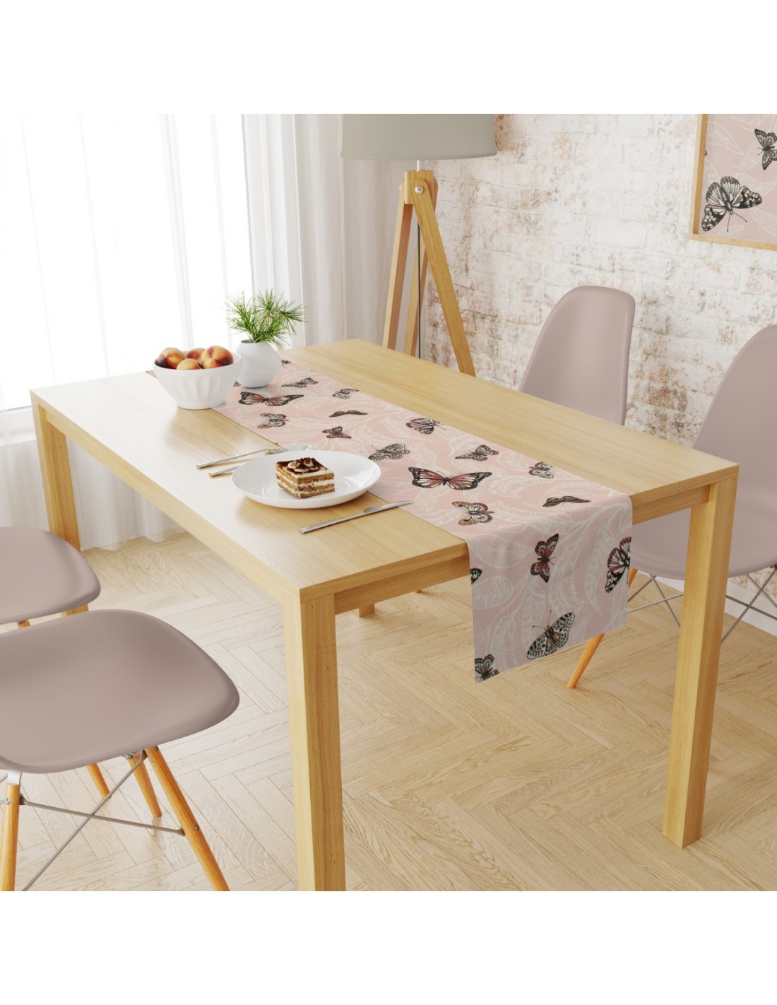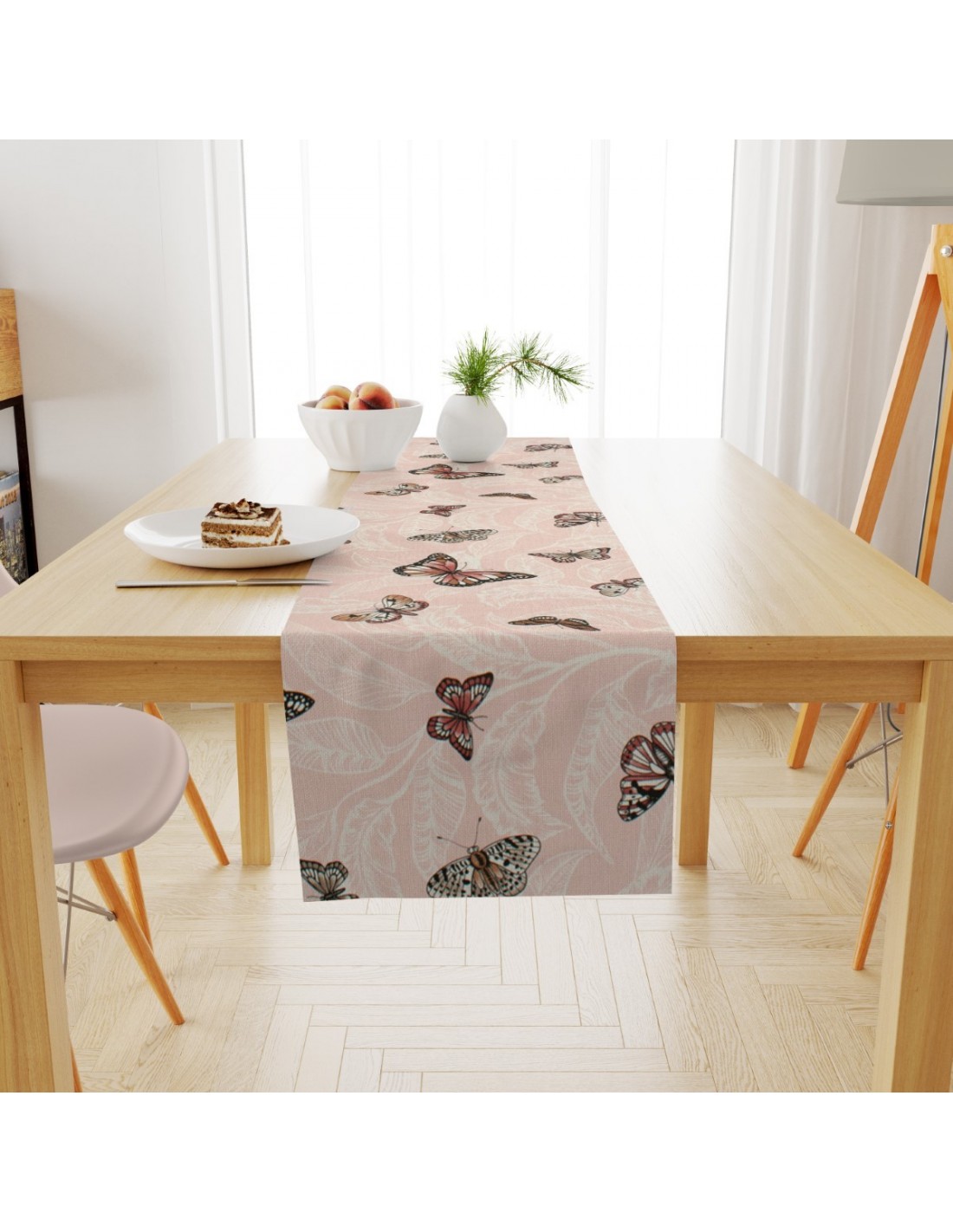 Αλέκιαστη τραβέρσα διάστασης 40x180 ύφανσης PANAMA με ειδικό φινίρισμα στα νήματα, που το καθιστά μαλακό και αδιάβροχο. Απωθεί αποτελεσματικά τους λεκέδες. Τυπωμένο με ανεξίτηλα ανθεκτικά χρώματα. Κατασκευασμένο από 70% βαμβάκι και 30% πολυέστερ.