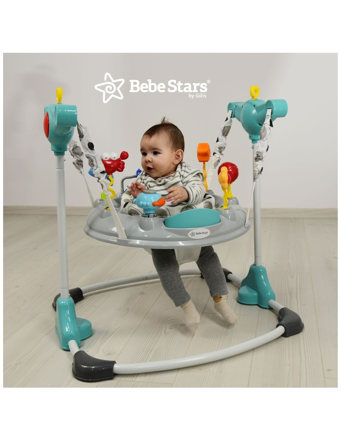 Το μωρό μπορεί να φτάσει, να πιάσει, να πηδήσει ψηλά – όλα αυτά που αναπτύσσουν τις κινητικές του ικανότητες.
