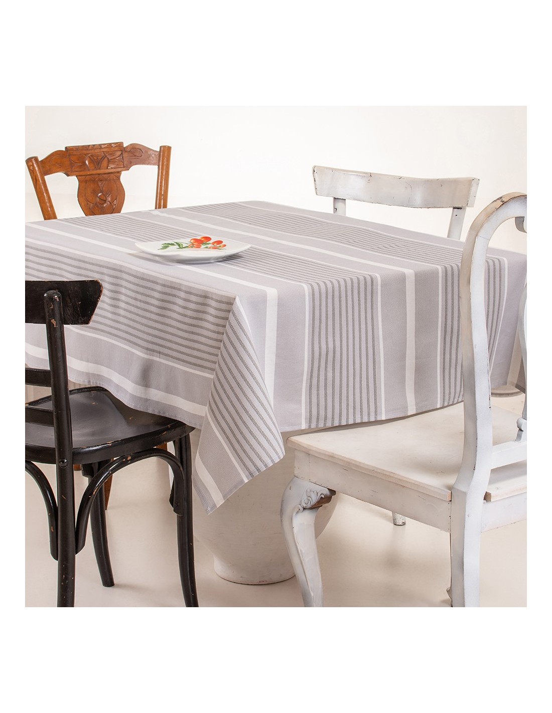 Τραπεζομάντηλο Frankie με ριγέ σχέδιο, κατασκευασμένο από λονέτα σύνθεσης 35% βαμβάκι -65% polyester. Η ύφανση του είναι πυκνή και στιβαρή και η αίσθηση του μαλακή. Είναι ιδανικό για καθημερινή χρήση καθώς είναι ανθεκτικό στο χρόνο και τα συχνά πλυσίματα. Διατίθεται σε τρεις διαστάσεις και δυο μοντέρνες αποχρώσεις.